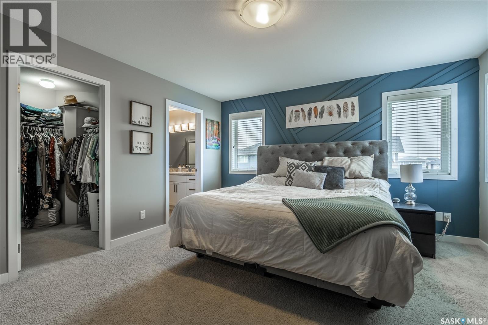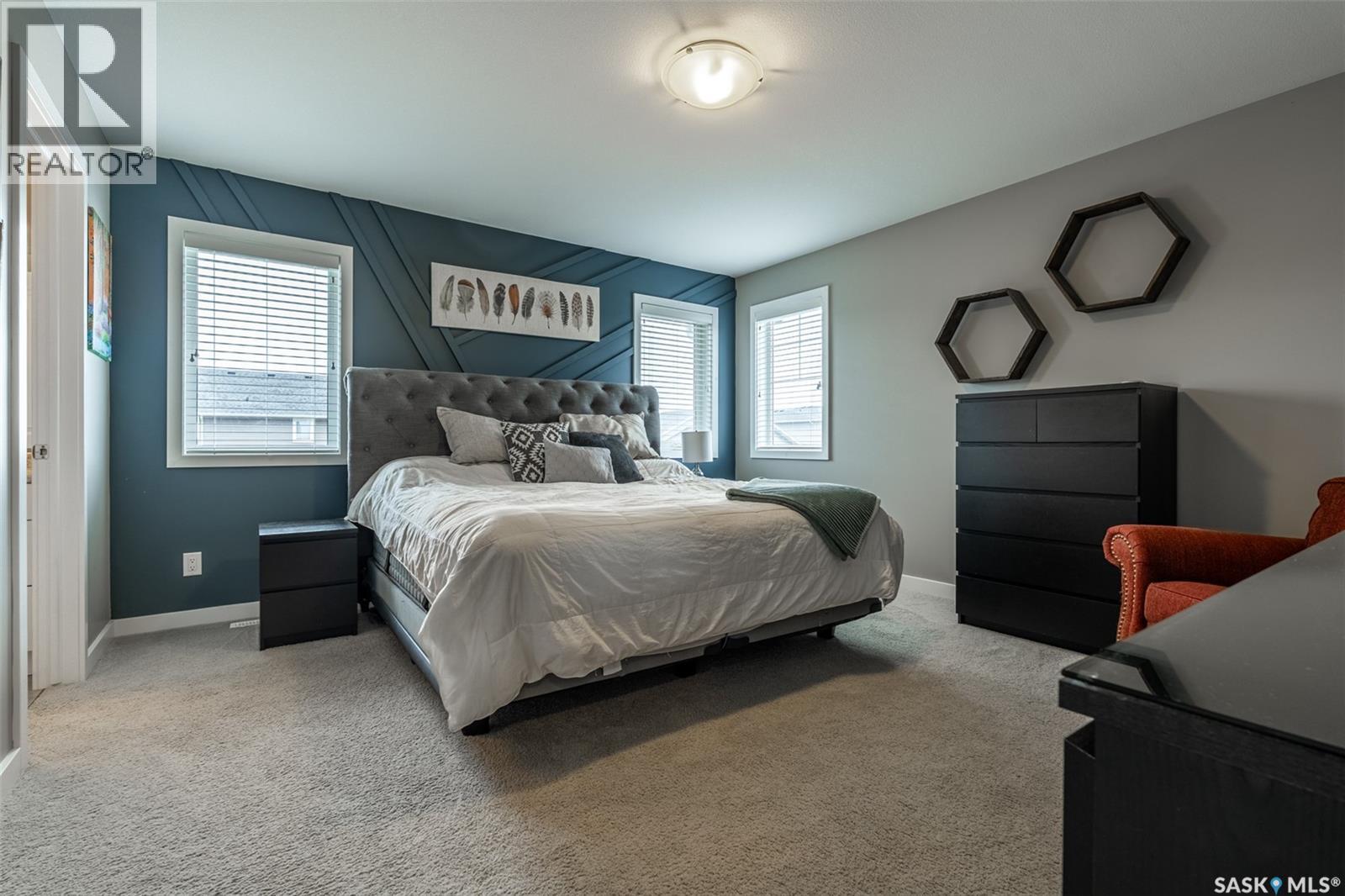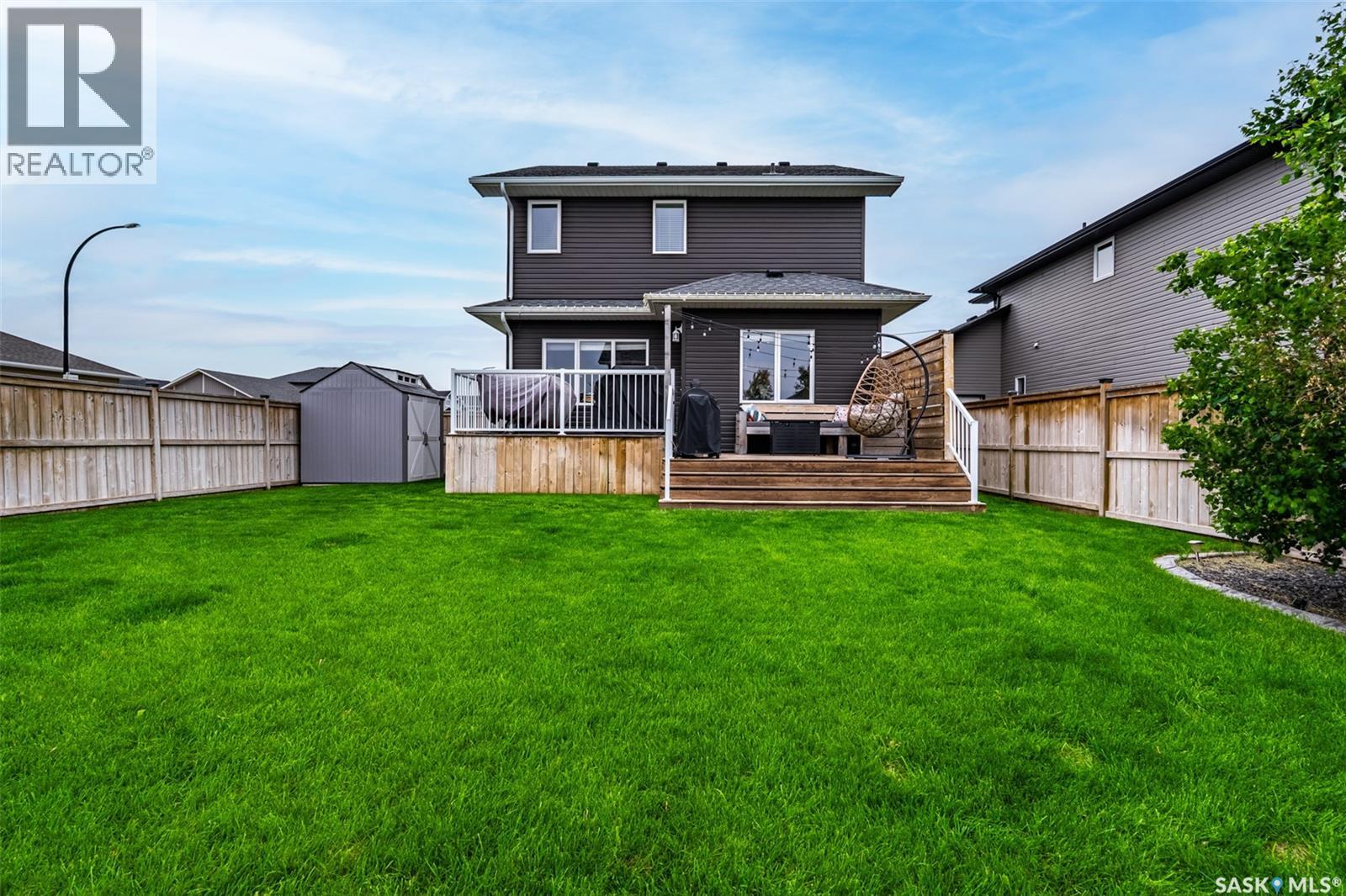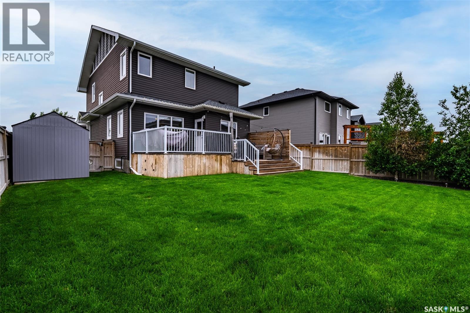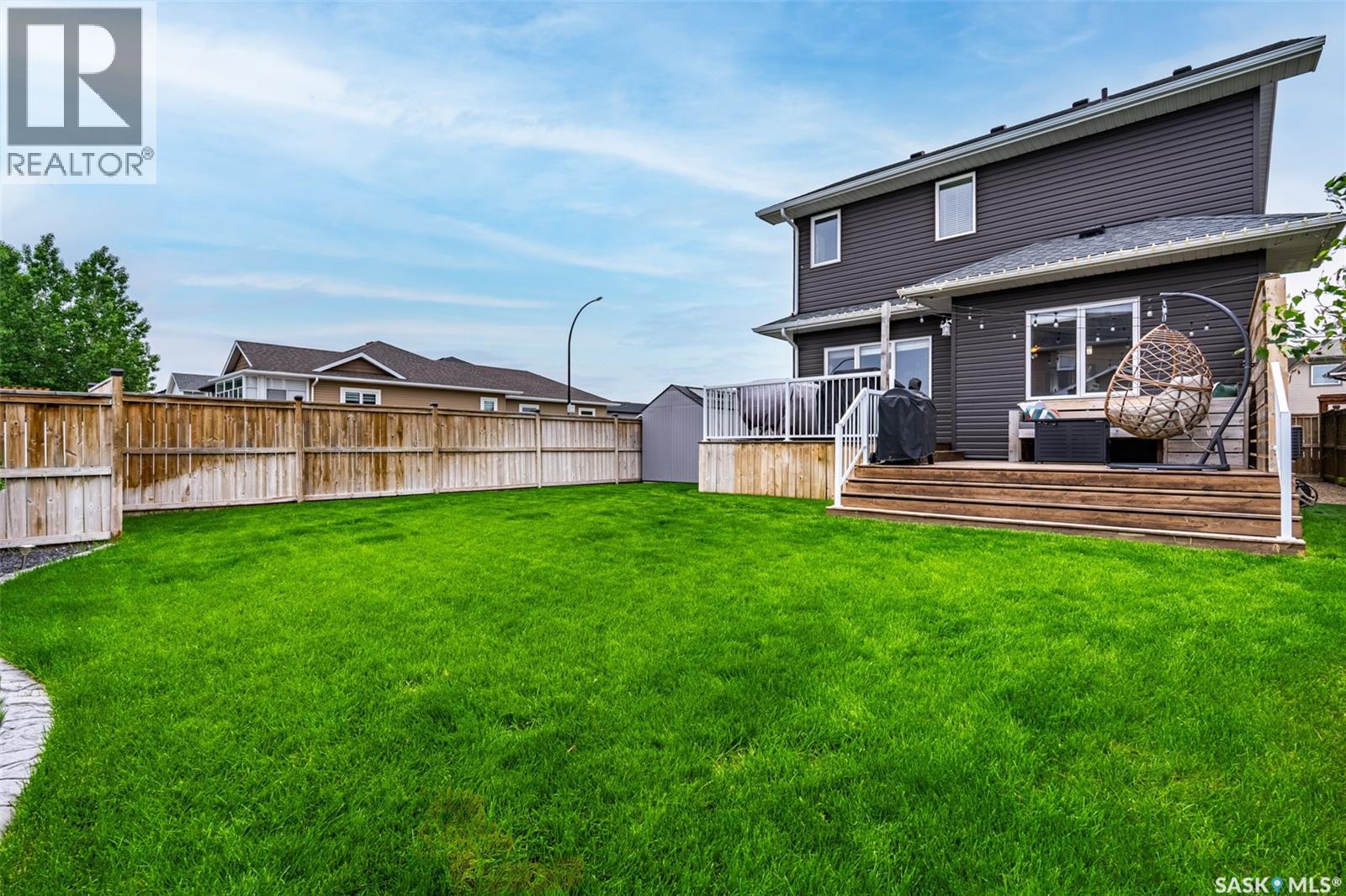 Welcome to 502 Childers Crescent in Saskatoon's Kensington neighbourhood. This two storey home was once a Montana Homes Show home. The current owners have added tasteful touches to the main floor and finished the basement beautifully. Walking in you are greeted with a spacious entry. Just off the garage entrance you will find a powder room and a laundry room. The rest of the main floor is open concept with the living room, dining room, and kitchen open to each other. Up on the second floor is a large bonus room, and 2 bedrooms for office/guests/kids, as well as a 4 piece bathroom. The primary bedroom is also on the second floor with a true walk-in closet, and a 4 piece bathroom with 2 sinks in the large vanity. The basement finishes are very appealing. There's a 4th bedroom, a 3 piece bathroom with a tiled shower, and plenty of room for a media space, a gym, family room, or a myriad of other options. The backyard is fully fenced, has a lush lawn, and a deck to hang out with friends as you BBQ on warm summer evenings. The garage is insulated and boarded keeping vehicles frost free in colder months. This house is turnkey and ready for it's new owners. (id:4069)