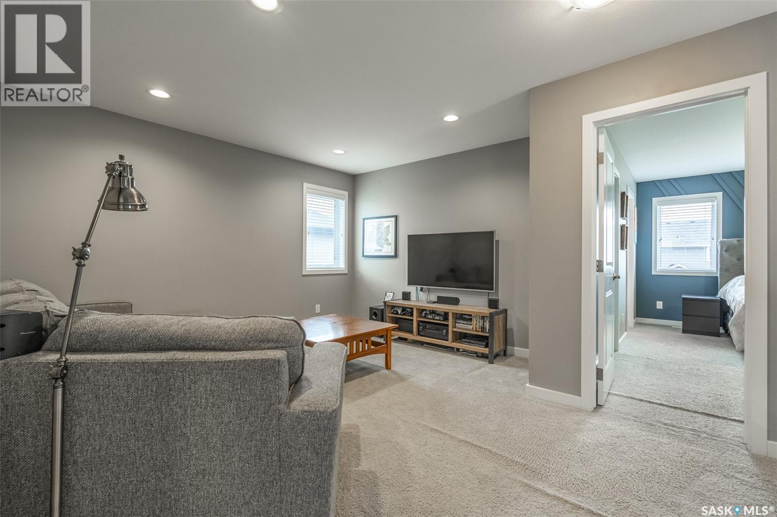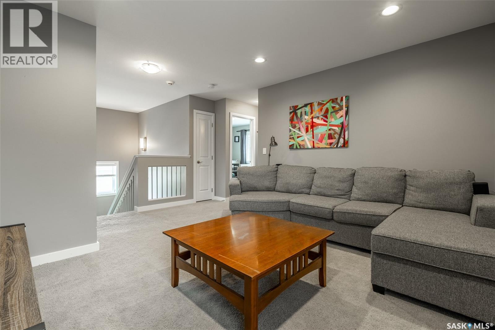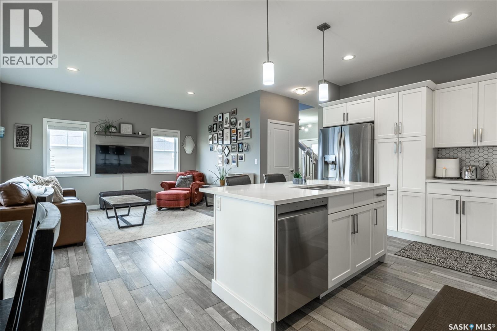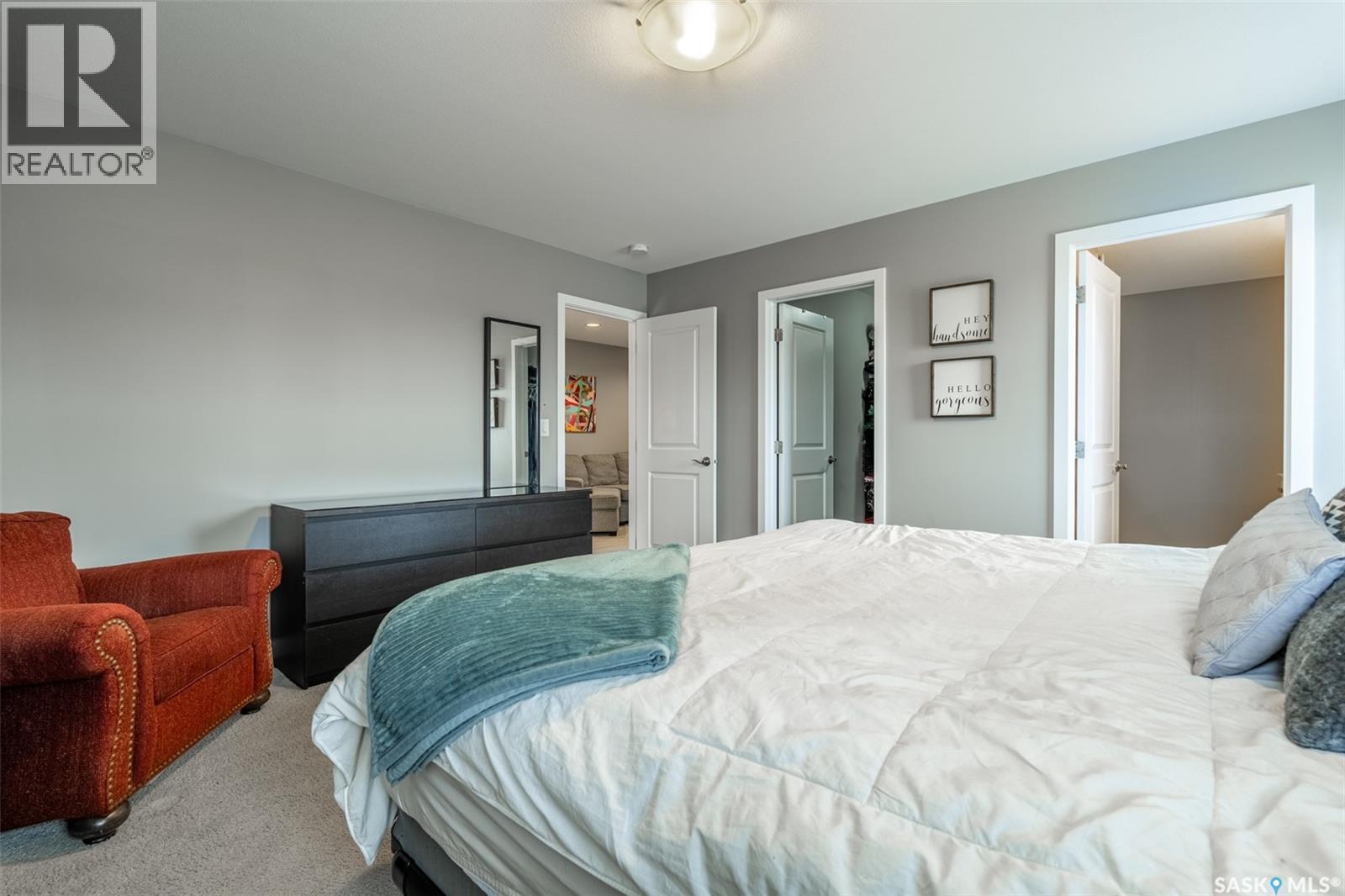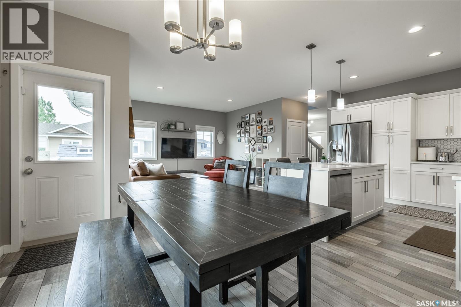 Welcome to 502 Childers Crescent in Saskatoon's Kensington neighbourhood. This two storey home was once a Montana Homes Show home. The current owners have added tasteful touches to the main floor and finished the basement beautifully. Walking in you are greeted with a spacious entry. Just off the garage entrance you will find a powder room and a laundry room. The rest of the main floor is open concept with the living room, dining room, and kitchen open to each other. Up on the second floor is a large bonus room, and 2 bedrooms for office/guests/kids, as well as a 4 piece bathroom. The primary bedroom is also on the second floor with a true walk-in closet, and a 4 piece bathroom with 2 sinks in the large vanity. The basement finishes are very appealing. There's a 4th bedroom, a 3 piece bathroom with a tiled shower, and plenty of room for a media space, a gym, family room, or a myriad of other options. The backyard is fully fenced, has a lush lawn, and a deck to hang out with friends as you BBQ on warm summer evenings. The garage is insulated and boarded keeping vehicles frost free in colder months. This house is turnkey and ready for it's new owners. (id:4069)