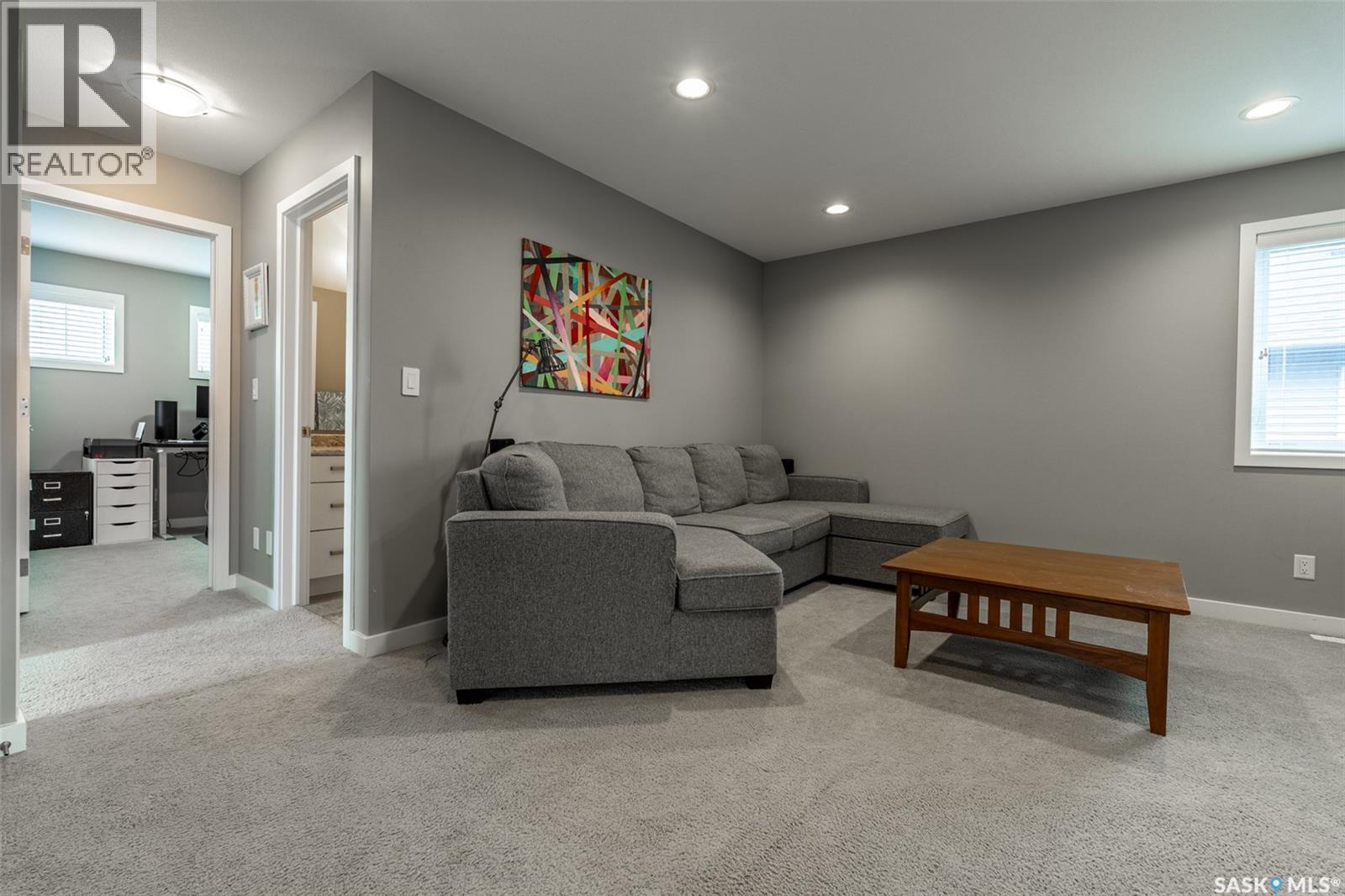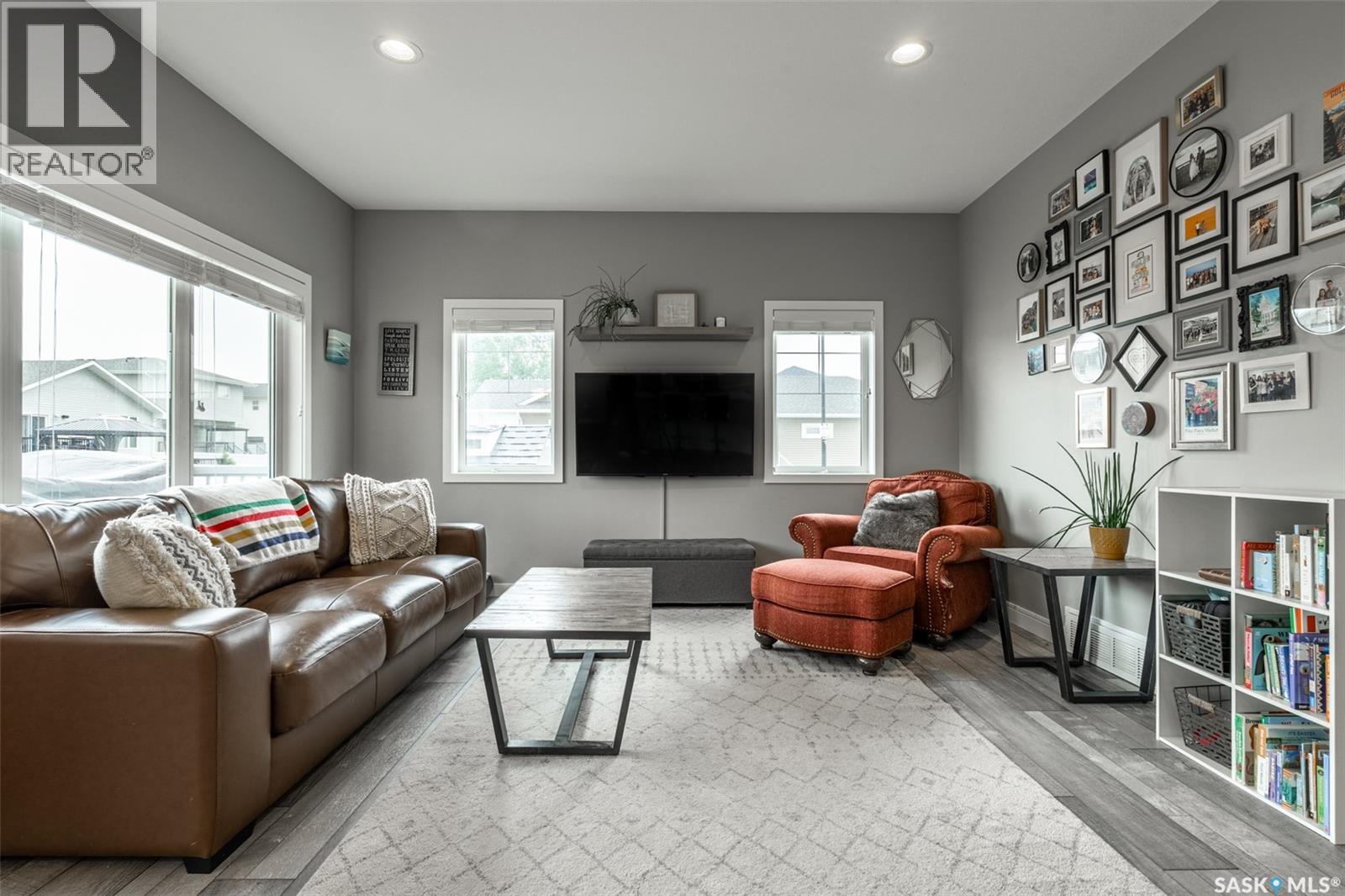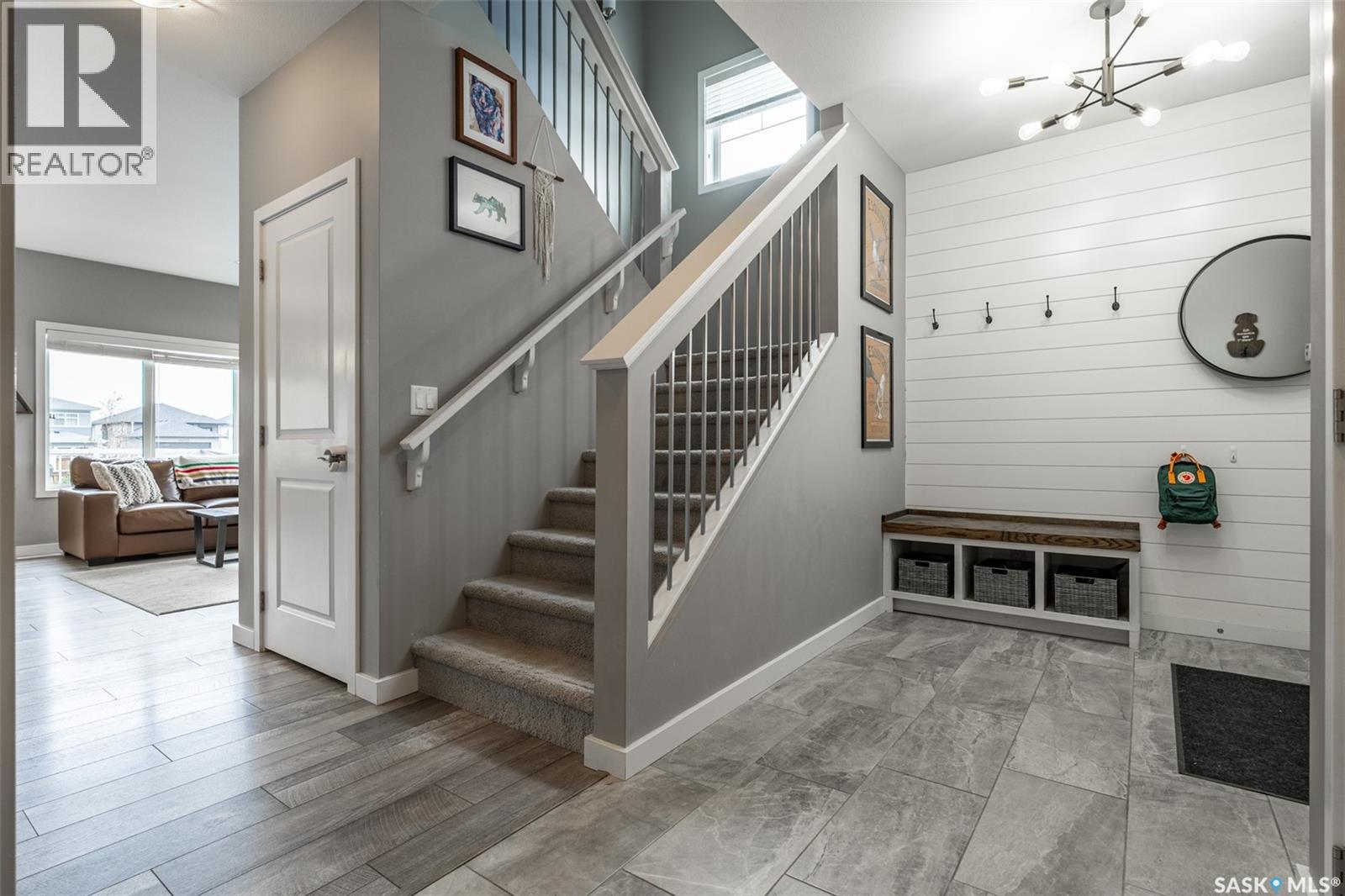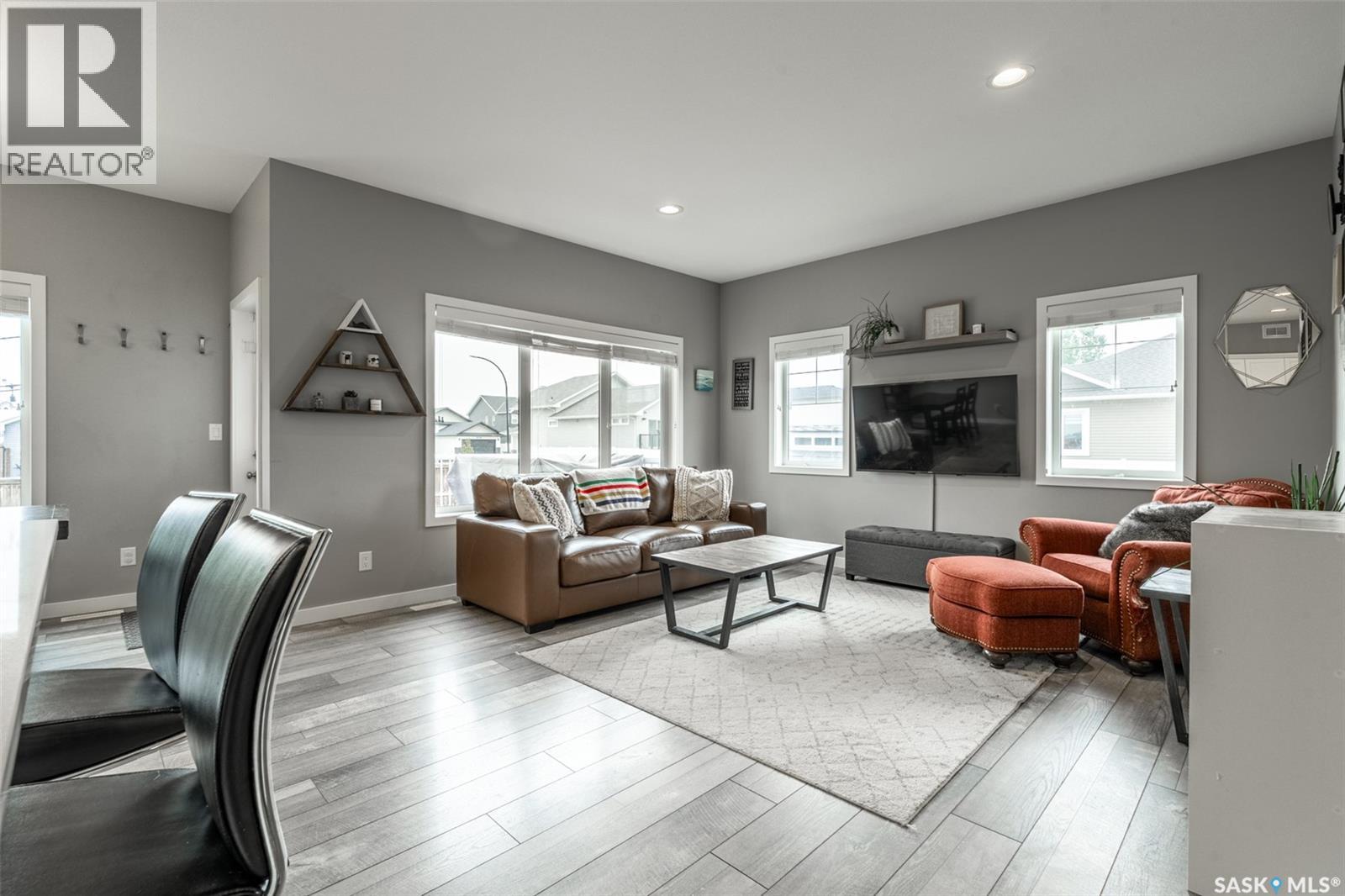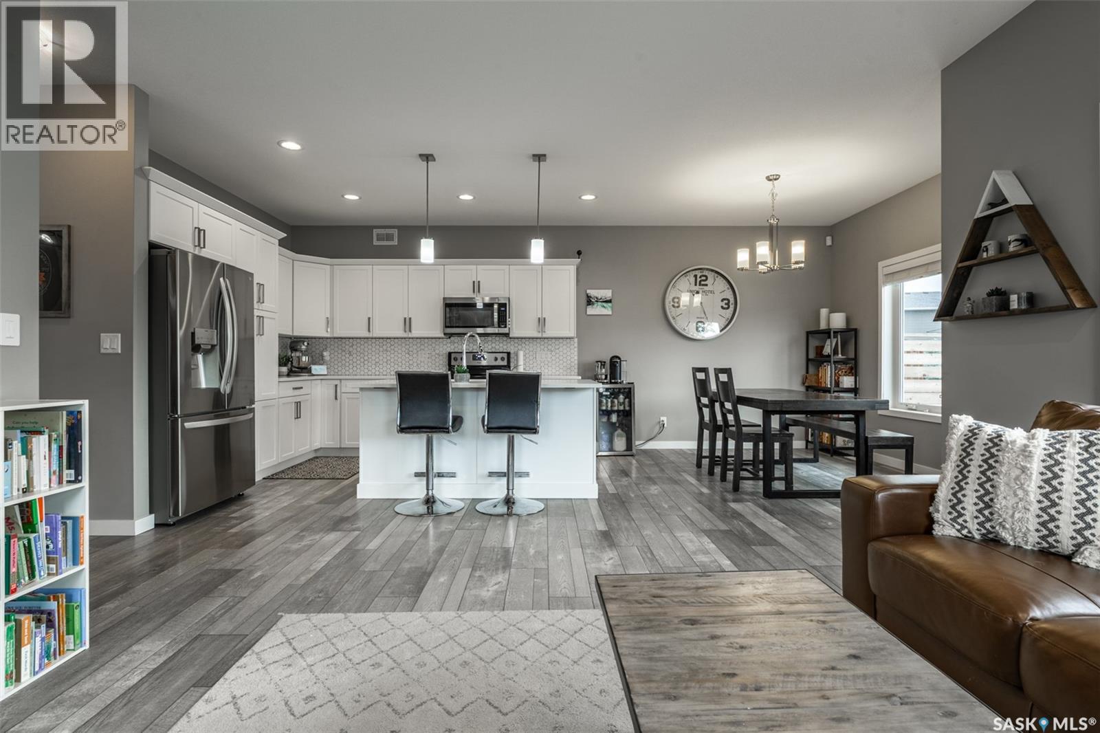 Welcome to 502 Childers Crescent in Saskatoon's Kensington neighbourhood. This two storey home was once a Montana Homes Show home. The current owners have added tasteful touches to the main floor and finished the basement beautifully. Walking in you are greeted with a spacious entry. Just off the garage entrance you will find a powder room and a laundry room. The rest of the main floor is open concept with the living room, dining room, and kitchen open to each other. Up on the second floor is a large bonus room, and 2 bedrooms for office/guests/kids, as well as a 4 piece bathroom. The primary bedroom is also on the second floor with a true walk-in closet, and a 4 piece bathroom with 2 sinks in the large vanity. The basement finishes are very appealing. There's a 4th bedroom, a 3 piece bathroom with a tiled shower, and plenty of room for a media space, a gym, family room, or a myriad of other options. The backyard is fully fenced, has a lush lawn, and a deck to hang out with friends as you BBQ on warm summer evenings. The garage is insulated and boarded keeping vehicles frost free in colder months. This house is turnkey and ready for it's new owners. (id:4069)