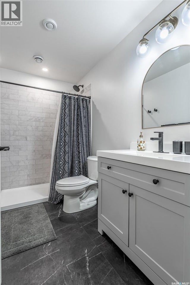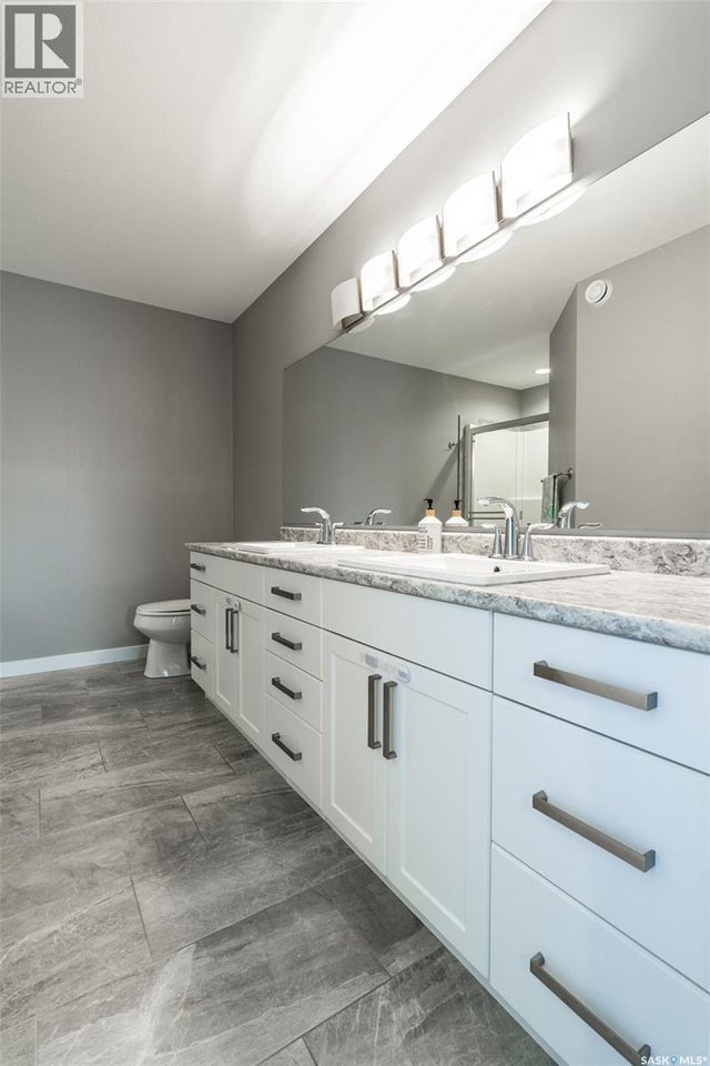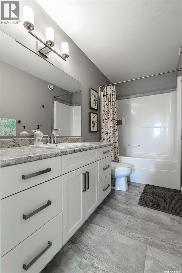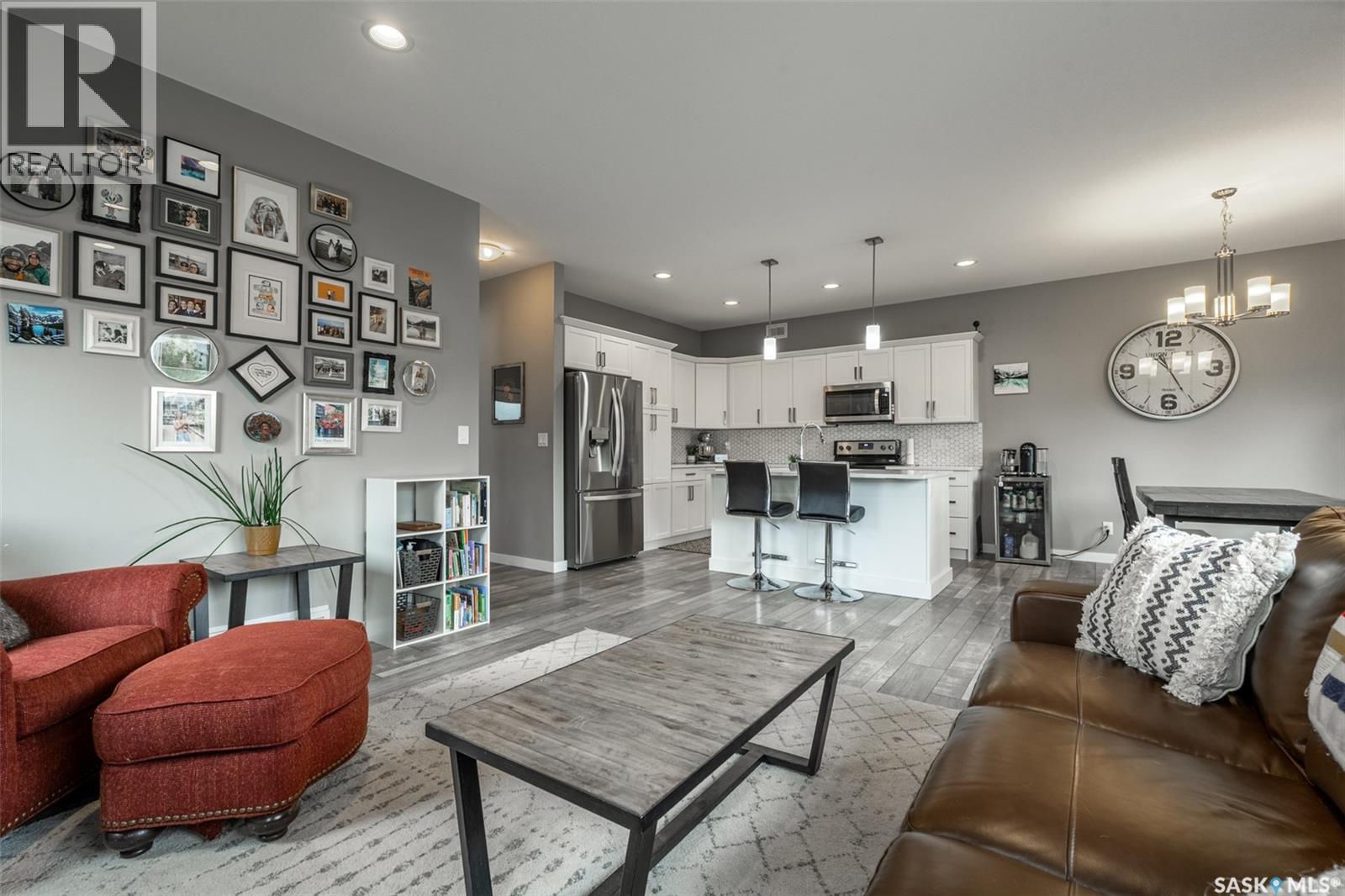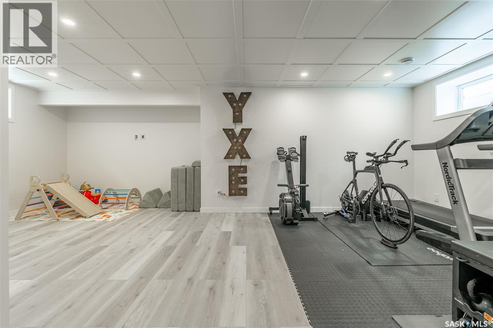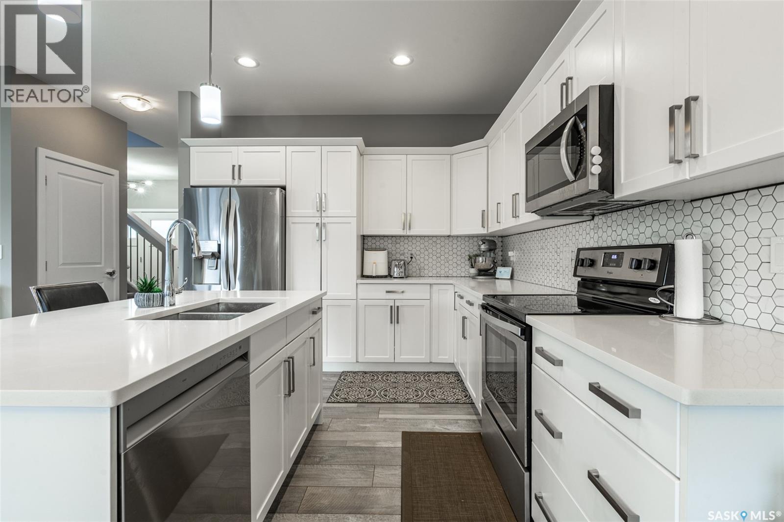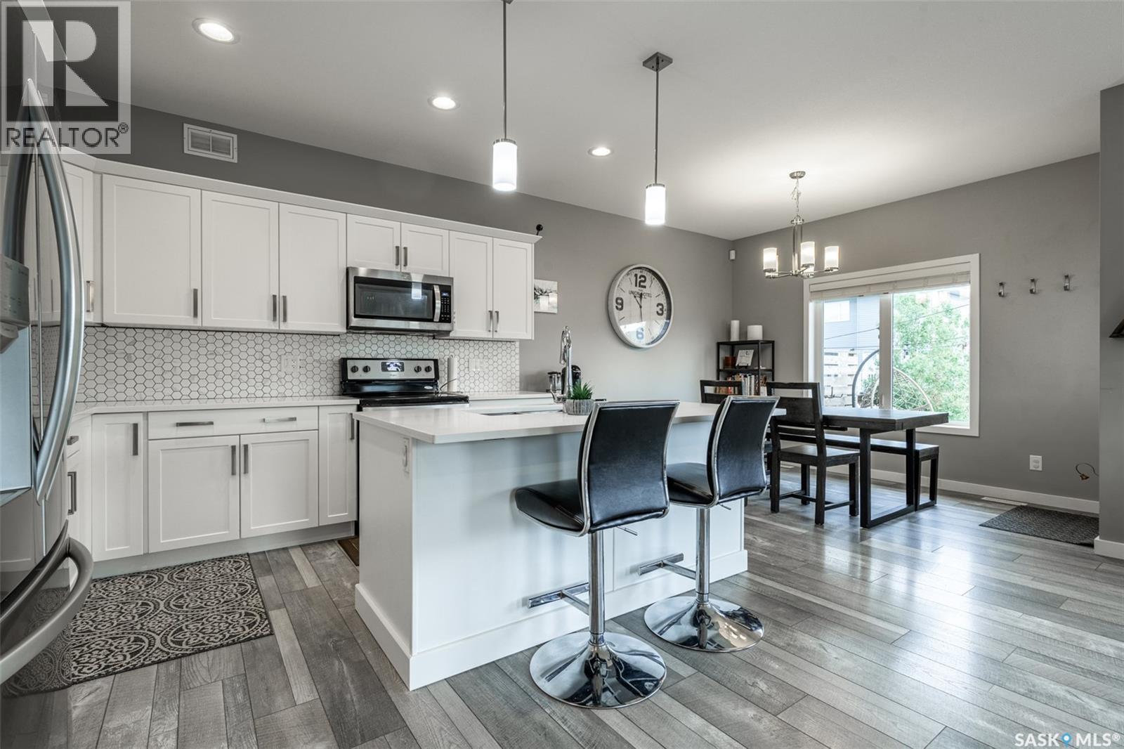 Welcome to 502 Childers Crescent in Saskatoon's Kensington neighbourhood. This two storey home was once a Montana Homes Show home. The current owners have added tasteful touches to the main floor and finished the basement beautifully. Walking in you are greeted with a spacious entry. Just off the garage entrance you will find a powder room and a laundry room. The rest of the main floor is open concept with the living room, dining room, and kitchen open to each other. Up on the second floor is a large bonus room, and 2 bedrooms for office/guests/kids, as well as a 4 piece bathroom. The primary bedroom is also on the second floor with a true walk-in closet, and a 4 piece bathroom with 2 sinks in the large vanity. The basement finishes are very appealing. There's a 4th bedroom, a 3 piece bathroom with a tiled shower, and plenty of room for a media space, a gym, family room, or a myriad of other options. The backyard is fully fenced, has a lush lawn, and a deck to hang out with friends as you BBQ on warm summer evenings. The garage is insulated and boarded keeping vehicles frost free in colder months. This house is turnkey and ready for it's new owners. (id:4069)