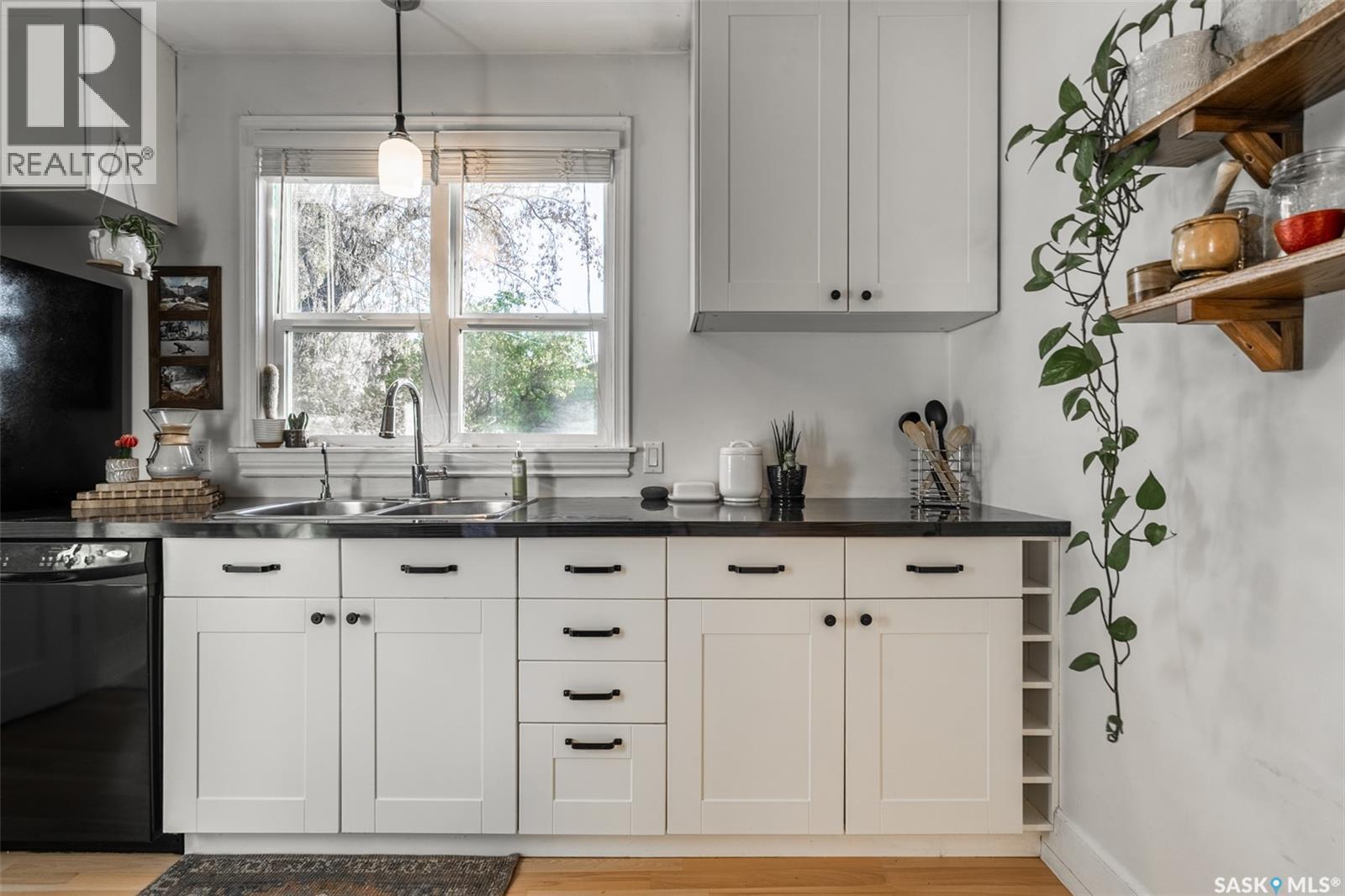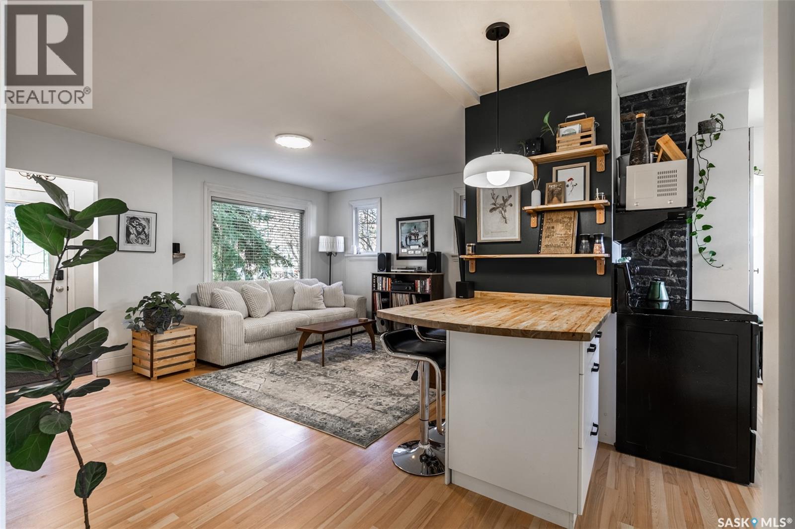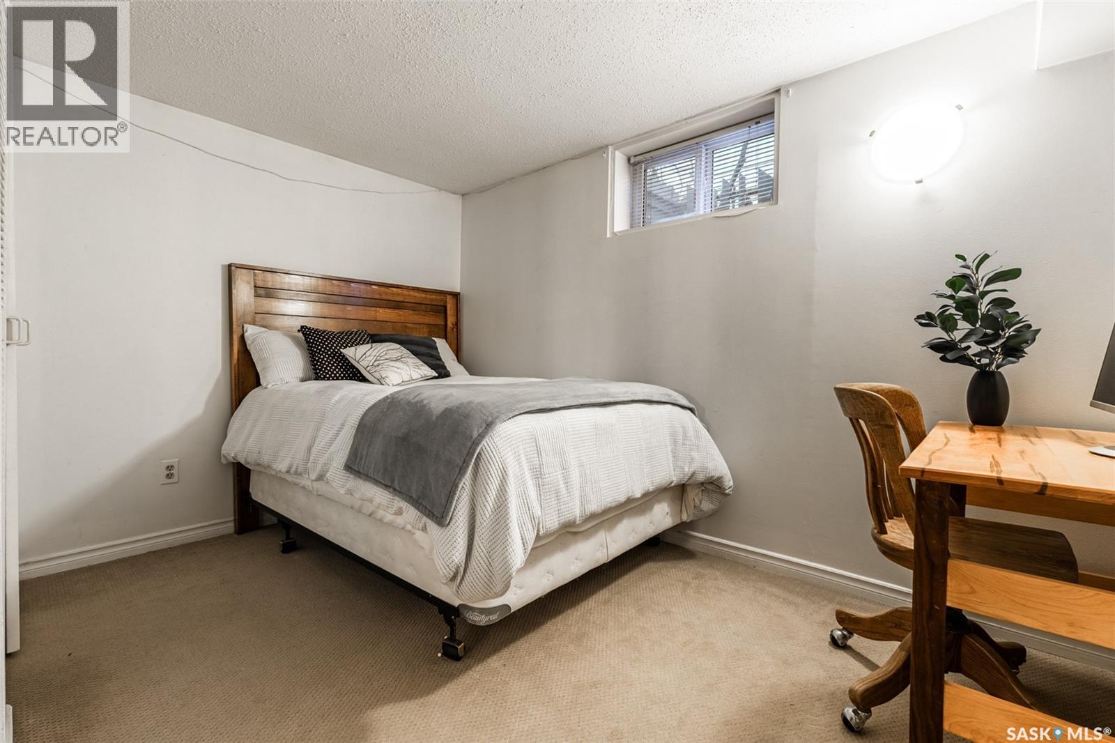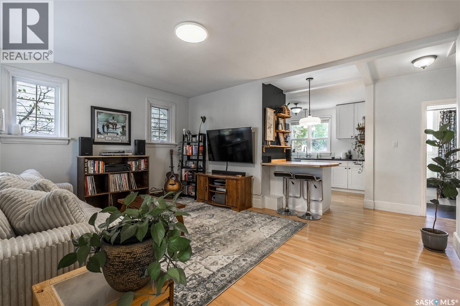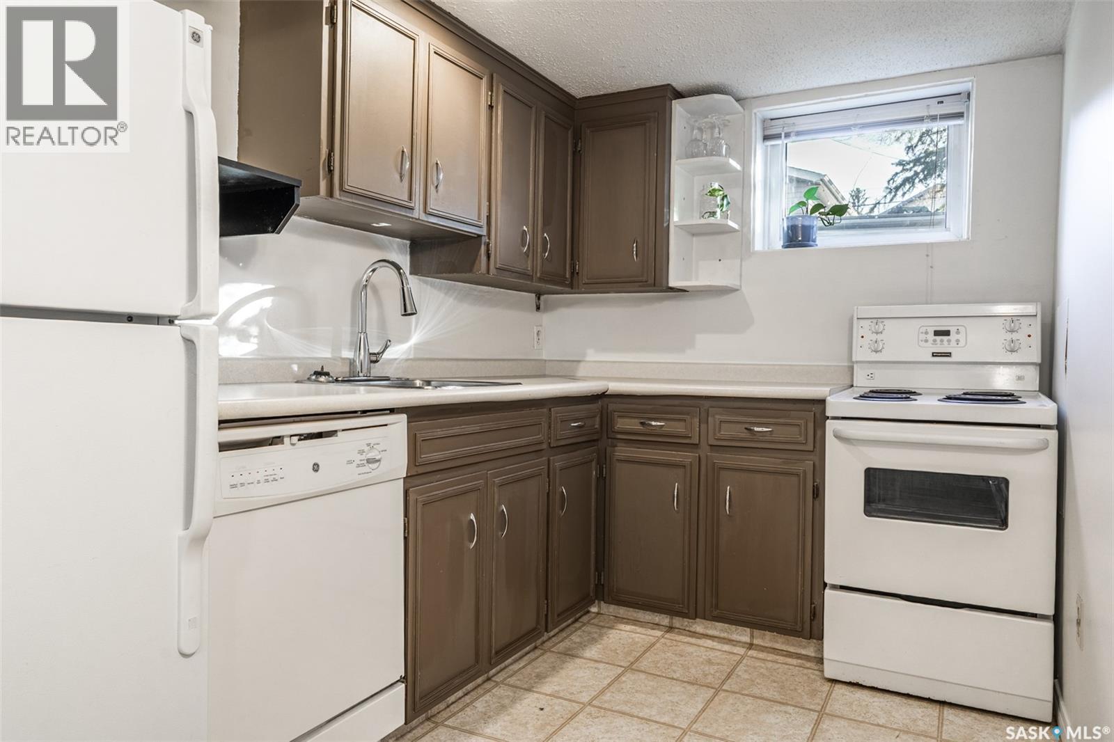 Welcome to 212 4th St east in Saskatoon's Buena Vista neighbourhood. This bungalow was built in 1946 and is only steps away from Buena Vista park. The main floor layout is perfect for entertaining friends or cooking together at the end of the day. With the peninsula to connect the kitchen and living room this will be a well used space. The living room has a big window to allow for lots of natural light. Also on the main floor you will find 2 good sized bedrooms, with the primary bedroom easily able to accommodate a king size bed as well as side tables. There is built in storage/linen closet in the hallway and a cute 4 piece bathroom that has recently been renovated. Downstairs is access to the shared laundry space as well as storage under the stairs. There is also a 1 bedroom suite that could be your mortgage helper, but could also simply be used as a family room with a wet bar. The kitchen is neat and tidy with all the appliances and a dedicated dishwasher for the suite. There are several windows down here for natural light in the living room, a bedroom with a window, and a closet (please note that the window does not meet current egress requirements). In the yard out back there is a patio to have summer dinners with friends, well established perennial beds that have gone to sleep for the winter, and a show stopping double detached garage that is heated and has a dedicated internet line out to it. This is the perfect starter home, an excellent revenue property, or somewhere to downsize into without leaving Buena Vista. As per the Seller’s direction, all offers will be presented on 11/07/2025 5:00PM. (id:4069)