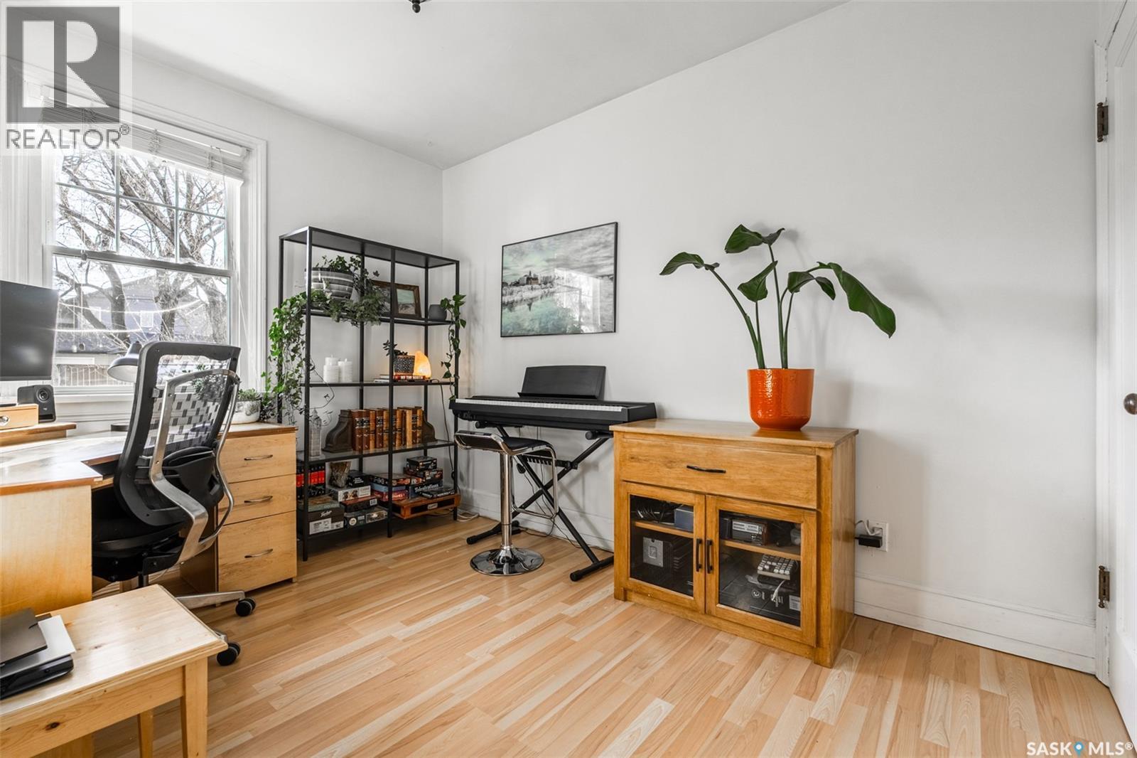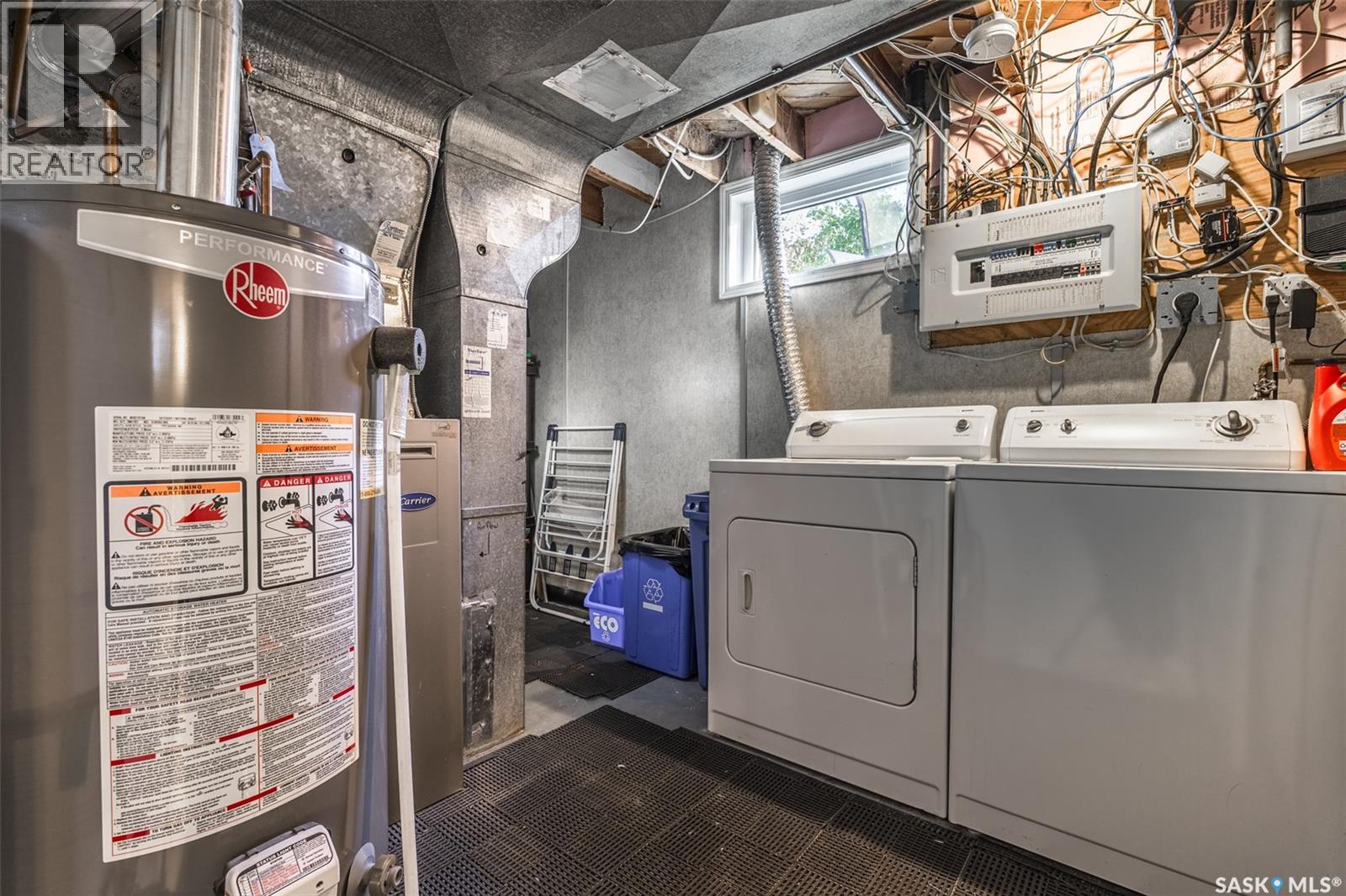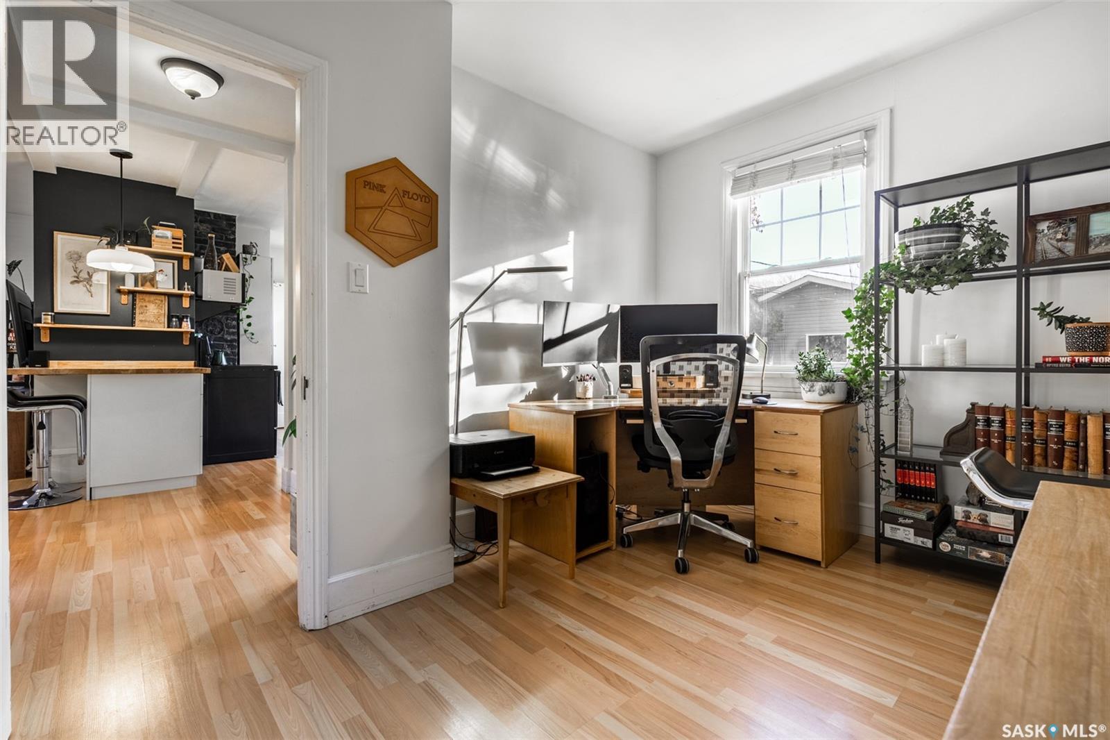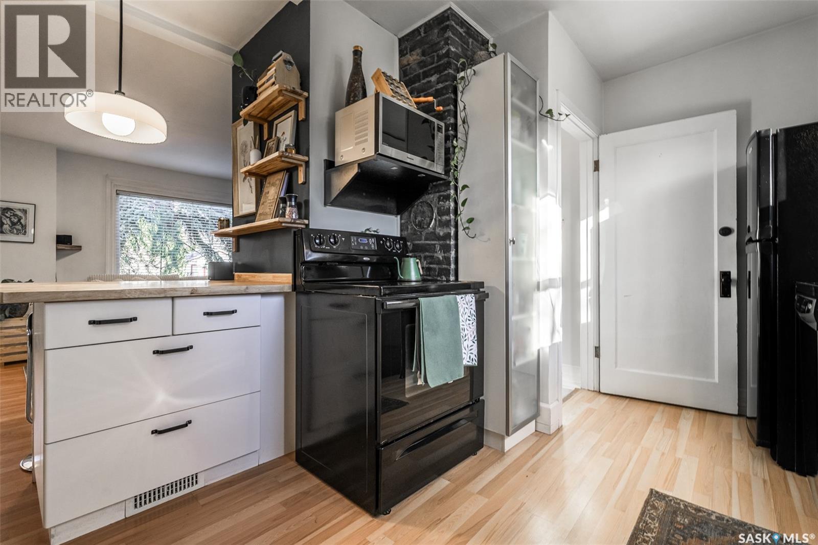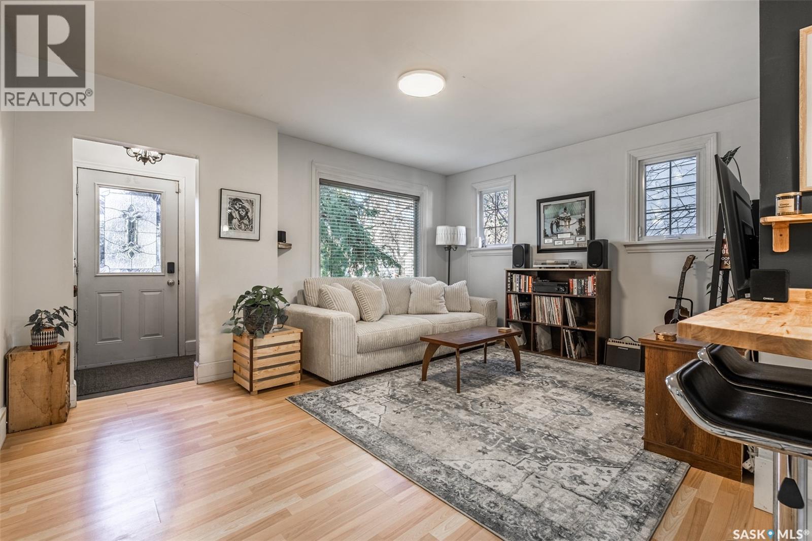 Welcome to 212 4th St east in Saskatoon's Buena Vista neighbourhood. This bungalow was built in 1946 and is only steps away from Buena Vista park. The main floor layout is perfect for entertaining friends or cooking together at the end of the day. With the peninsula to connect the kitchen and living room this will be a well used space. The living room has a big window to allow for lots of natural light. Also on the main floor you will find 2 good sized bedrooms, with the primary bedroom easily able to accommodate a king size bed as well as side tables. There is built in storage/linen closet in the hallway and a cute 4 piece bathroom that has recently been renovated. Downstairs is access to the shared laundry space as well as storage under the stairs. There is also a 1 bedroom suite that could be your mortgage helper, but could also simply be used as a family room with a wet bar. The kitchen is neat and tidy with all the appliances and a dedicated dishwasher for the suite. There are several windows down here for natural light in the living room, a bedroom with a window, and a closet (please note that the window does not meet current egress requirements). In the yard out back there is a patio to have summer dinners with friends, well established perennial beds that have gone to sleep for the winter, and a show stopping double detached garage that is heated and has a dedicated internet line out to it. This is the perfect starter home, an excellent revenue property, or somewhere to downsize into without leaving Buena Vista. As per the Seller’s direction, all offers will be presented on 11/07/2025 5:00PM. (id:4069)