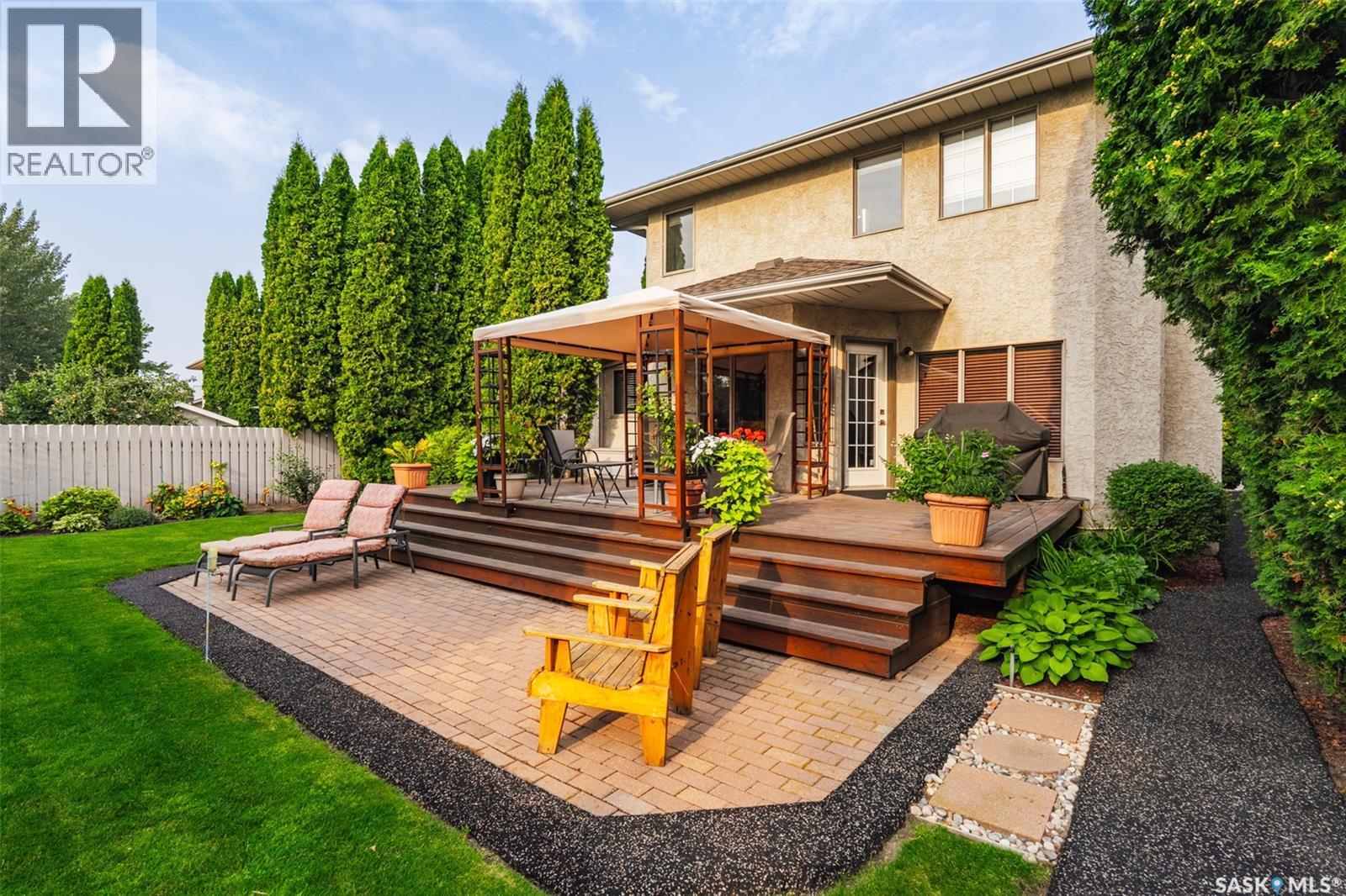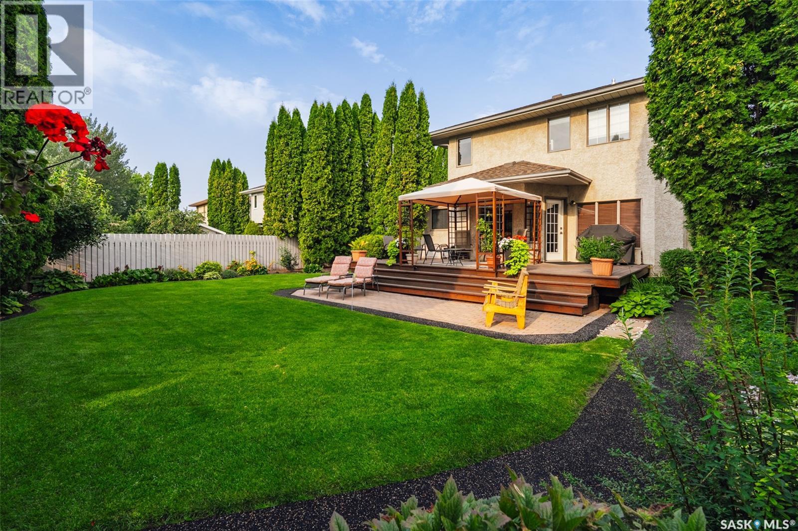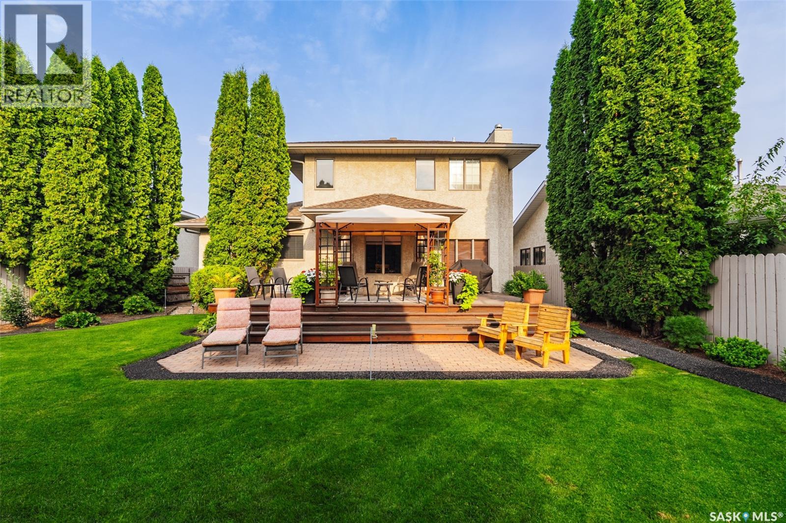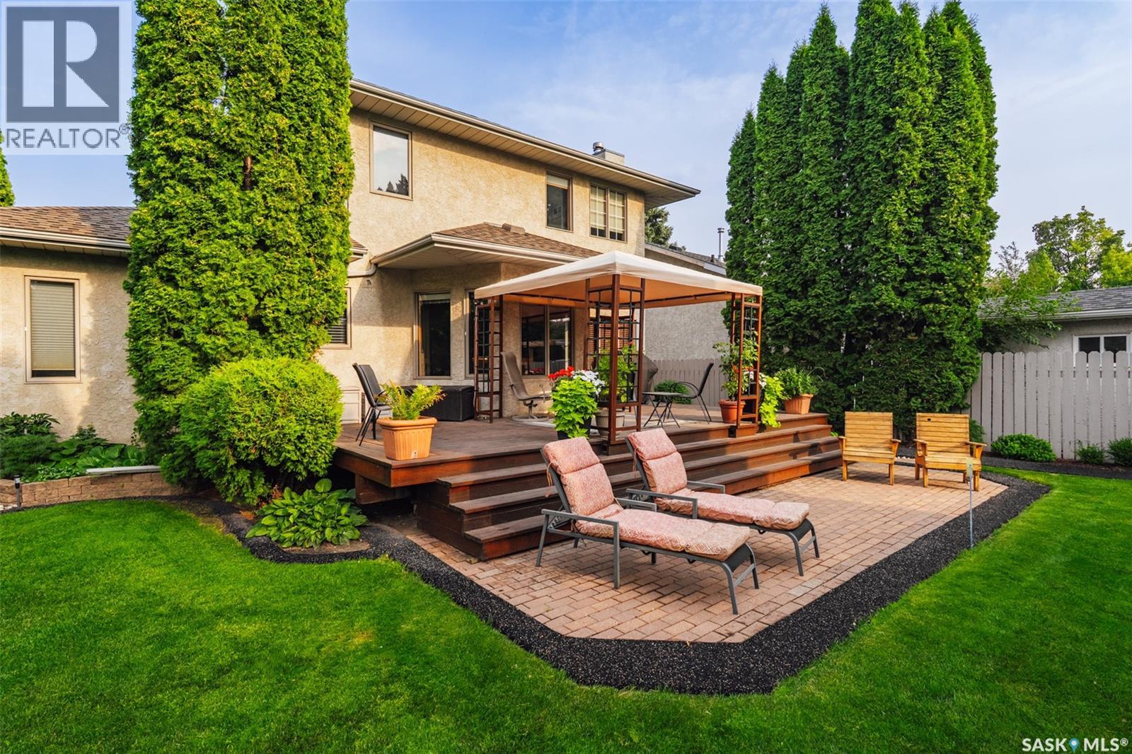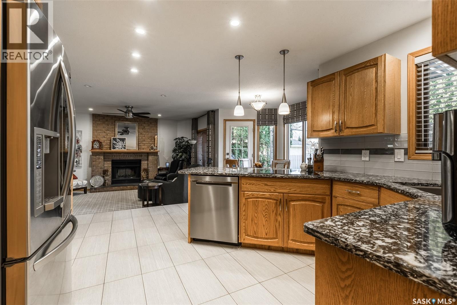 Welcome to 638 Hurley Cres in Saskatoon's Erindale neighbourhood. This 2 storey home was custom built and has been lovingly cared for by the same owners for over 30 years. A spacious foyer greets you as you walk in. At the front of the house there’s a more formal living room that leads directly to the dining room, making it a great space to host guests. The kitchen is very well appointed with stainless steel appliances, stone countertops, a pantry for storage, and views of the backyard. Here you’ll also find a nook for casual meals, and a living room with a cozy wood burning fireplace for cooler months. Also on the main floor is an office space, access to the double attached garage, main floor laundry, and a powder room. Heading up to the 2nd floor you’ll find a large primary bedroom with a walk through closet that leads to a 5 piece ensuite, as well as 2 big secondary bedrooms and a 4 pc bathroom. Down in the basement there's a recreation room for watching the game with friends or sending the kids down to play. There’s also a den, a 4th bedroom, a 3 piece bathroom and plenty to room to tuck things away in 2 storage spaces! Please note that the bedroom window does not meet current egress standards. Next summer you’ll thank yourself for buying this house, this yard is stunning! There’s a cedar deck with a gazebo (2 covers included), a brick patio, rubber curbing around the beautiful perennial beds, a perfect lawn, and the cutest shed that matches the house. (id:4069)
