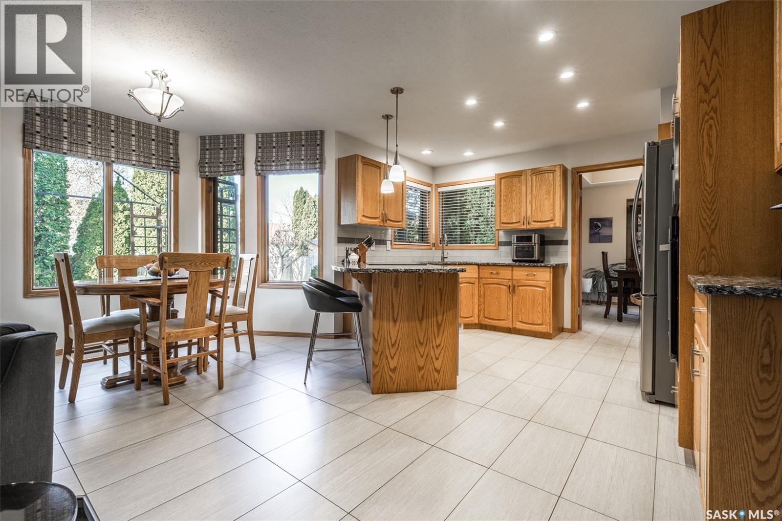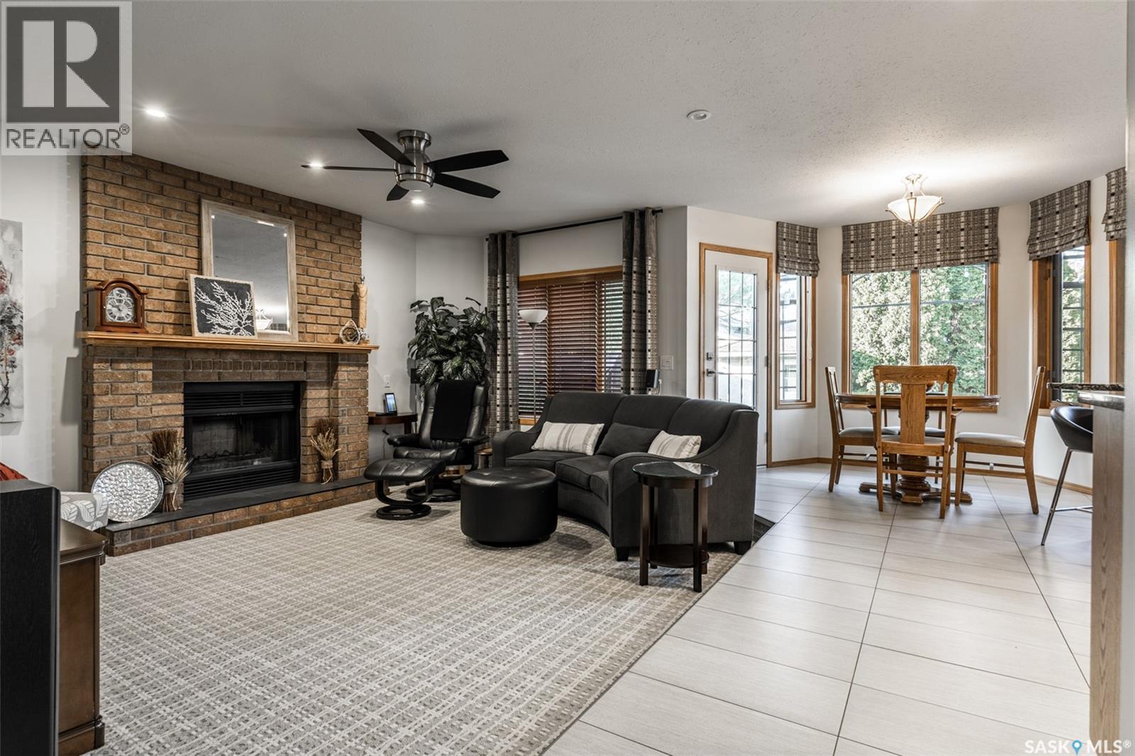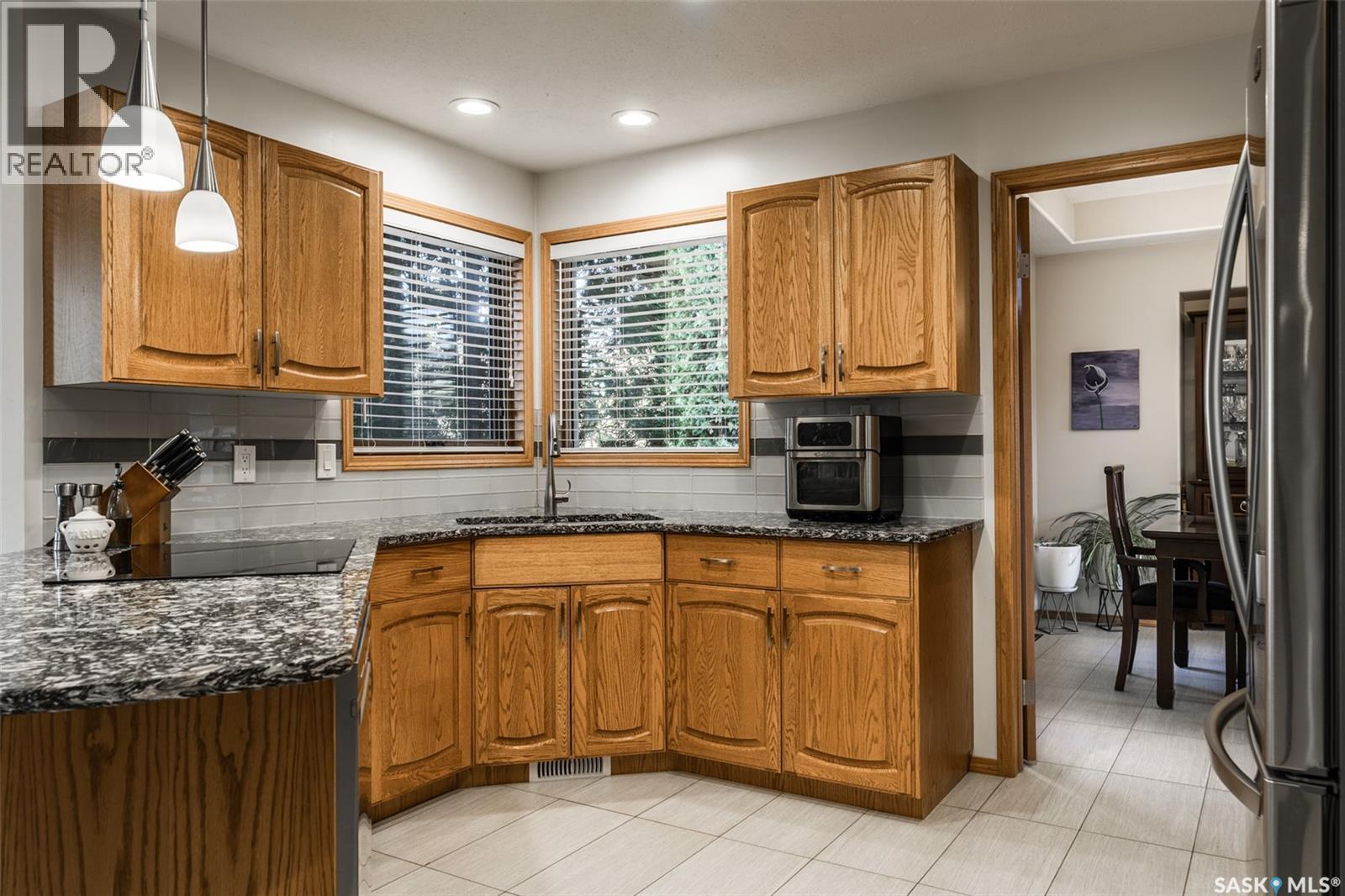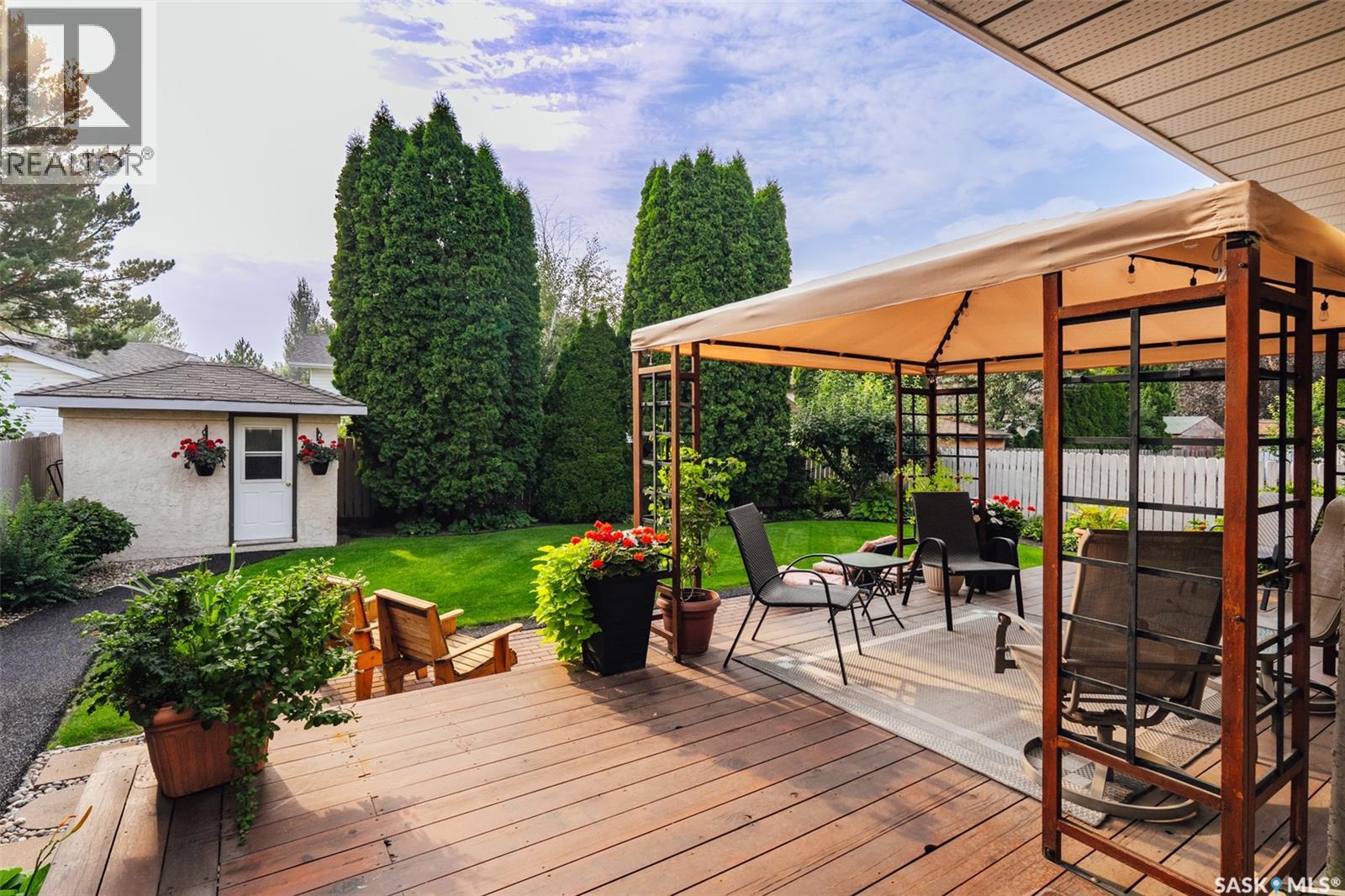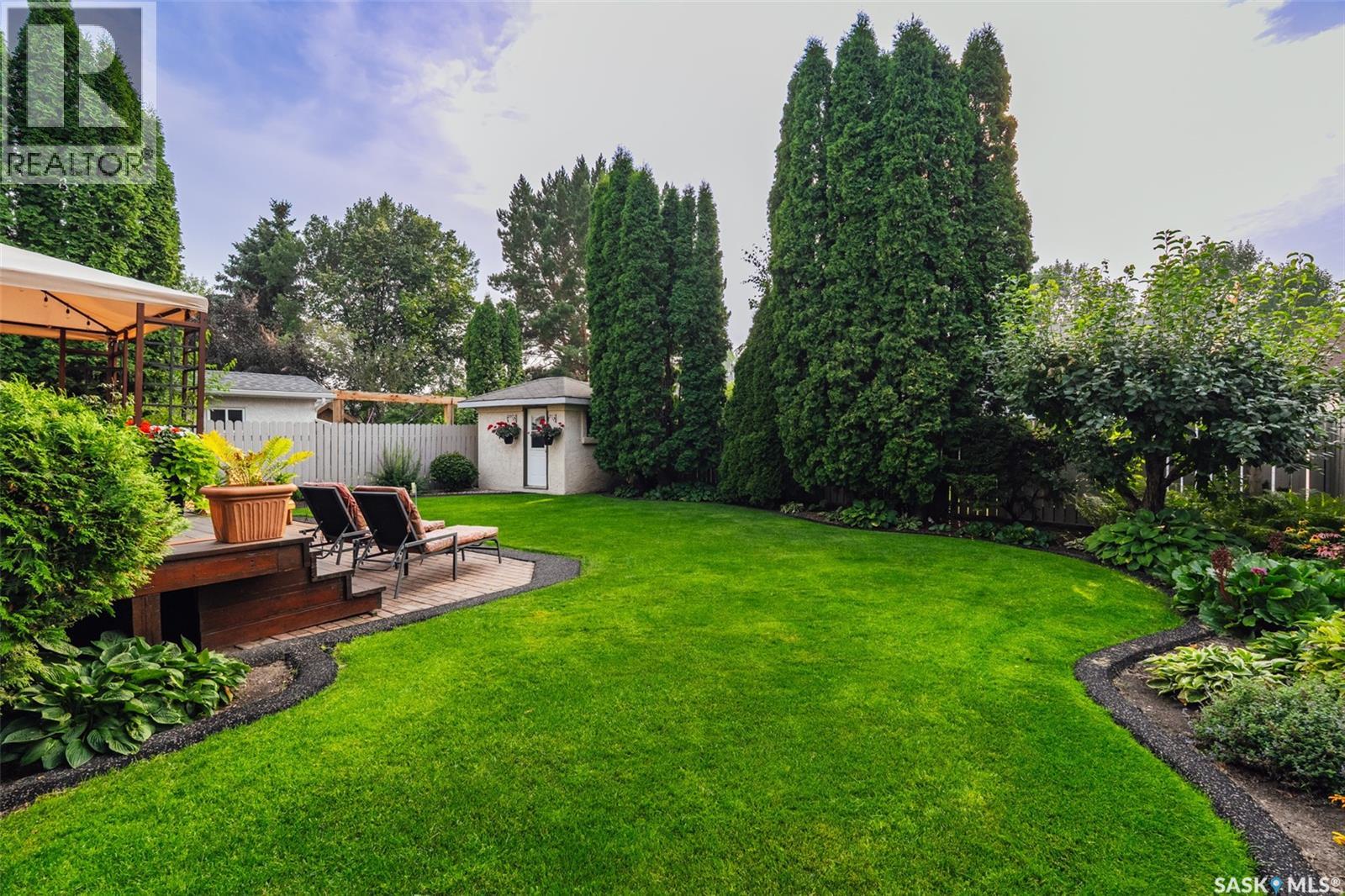 Welcome to 638 Hurley Cres in Saskatoon's Erindale neighbourhood. This 2 storey home was custom built and has been lovingly cared for by the same owners for over 30 years. A spacious foyer greets you as you walk in. At the front of the house there’s a more formal living room that leads directly to the dining room, making it a great space to host guests. The kitchen is very well appointed with stainless steel appliances, stone countertops, a pantry for storage, and views of the backyard. Here you’ll also find a nook for casual meals, and a living room with a cozy wood burning fireplace for cooler months. Also on the main floor is an office space, access to the double attached garage, main floor laundry, and a powder room. Heading up to the 2nd floor you’ll find a large primary bedroom with a walk through closet that leads to a 5 piece ensuite, as well as 2 big secondary bedrooms and a 4 pc bathroom. Down in the basement there's a recreation room for watching the game with friends or sending the kids down to play. There’s also a den, a 4th bedroom, a 3 piece bathroom and plenty to room to tuck things away in 2 storage spaces! Please note that the bedroom window does not meet current egress standards. Next summer you’ll thank yourself for buying this house, this yard is stunning! There’s a cedar deck with a gazebo (2 covers included), a brick patio, rubber curbing around the beautiful perennial beds, a perfect lawn, and the cutest shed that matches the house. (id:4069)