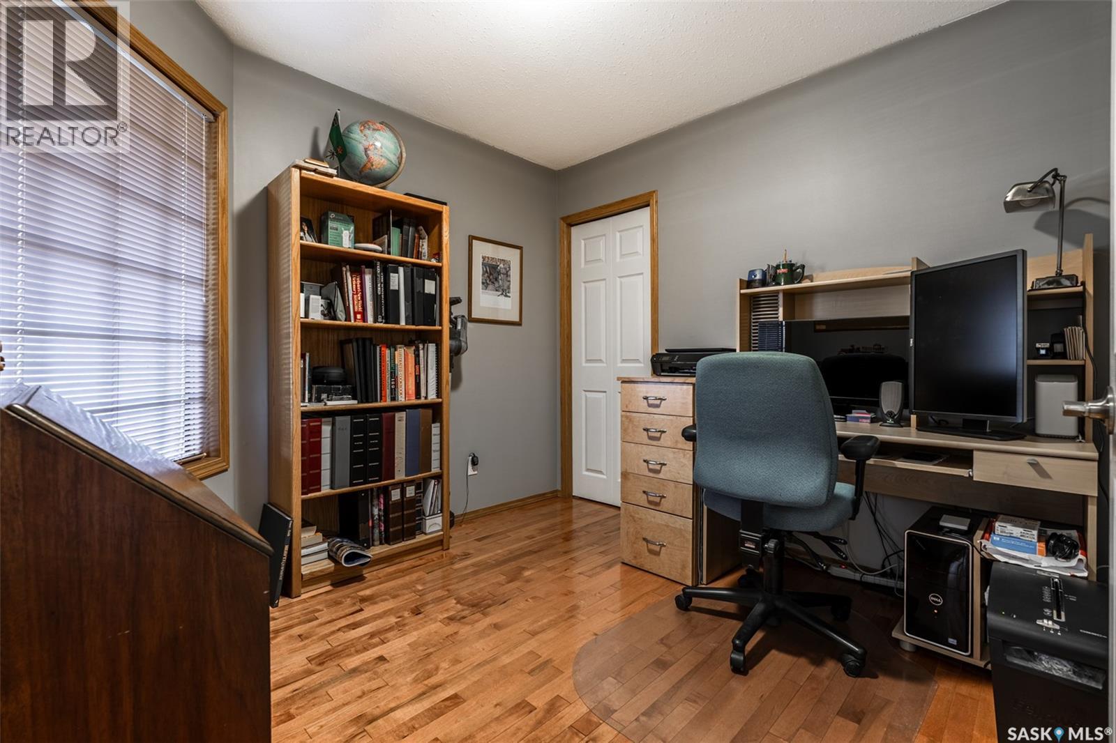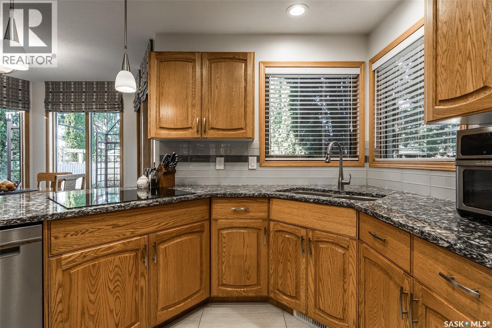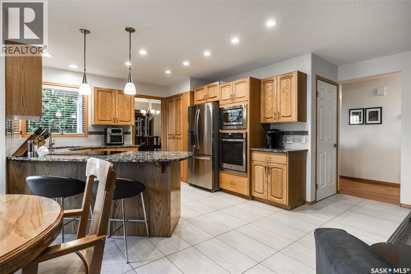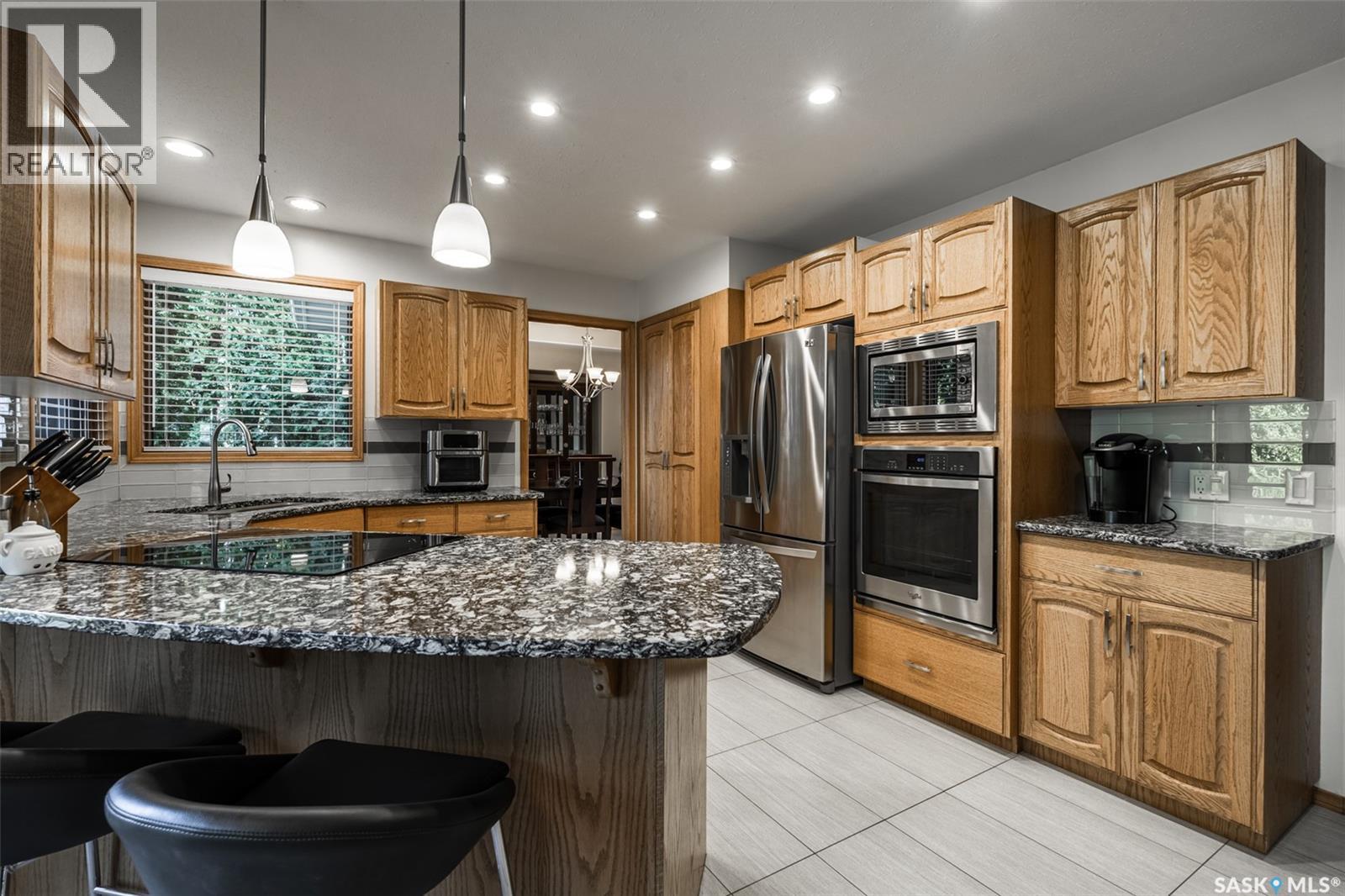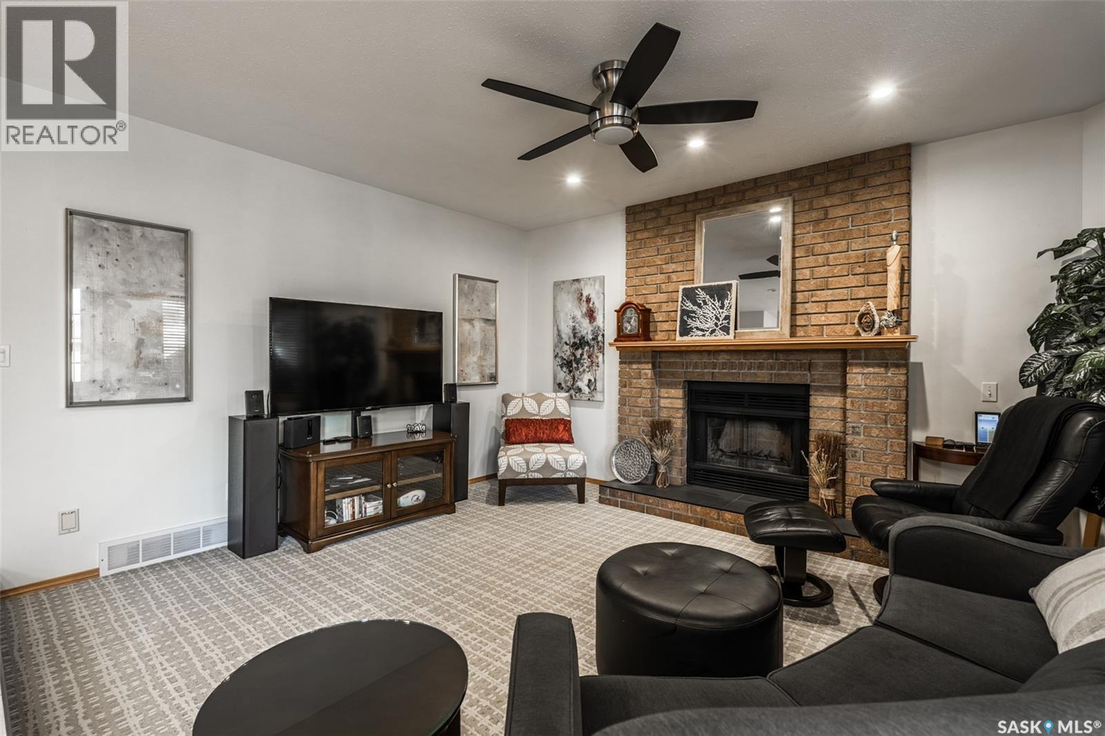Welcome to 638 Hurley Cres in Saskatoon's Erindale neighbourhood. This 2 storey home was custom built and has been lovingly cared for by the same owners for over 30 years. A spacious foyer greets you as you walk in. At the front of the house there’s a more formal living room that leads directly to the dining room, making it a great space to host guests. The kitchen is very well appointed with stainless steel appliances, stone countertops, a pantry for storage, and views of the backyard. Here you’ll also find a nook for casual meals, and a living room with a cozy wood burning fireplace for cooler months. Also on the main floor is an office space, access to the double attached garage, main floor laundry, and a powder room. Heading up to the 2nd floor you’ll find a large primary bedroom with a walk through closet that leads to a 5 piece ensuite, as well as 2 big secondary bedrooms and a 4 pc bathroom. Down in the basement there's a recreation room for watching the game with friends or sending the kids down to play. There’s also a den, a 4th bedroom, a 3 piece bathroom and plenty to room to tuck things away in 2 storage spaces! Please note that the bedroom window does not meet current egress standards. Next summer you’ll thank yourself for buying this house, this yard is stunning! There’s a cedar deck with a gazebo (2 covers included), a brick patio, rubber curbing around the beautiful perennial beds, a perfect lawn, and the cutest shed that matches the house. (id:4069)