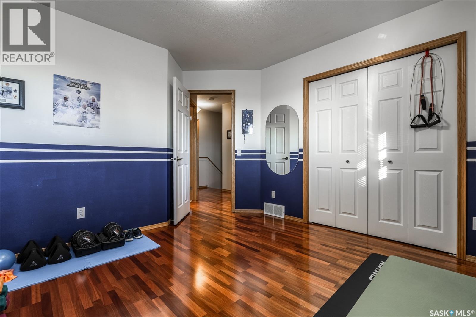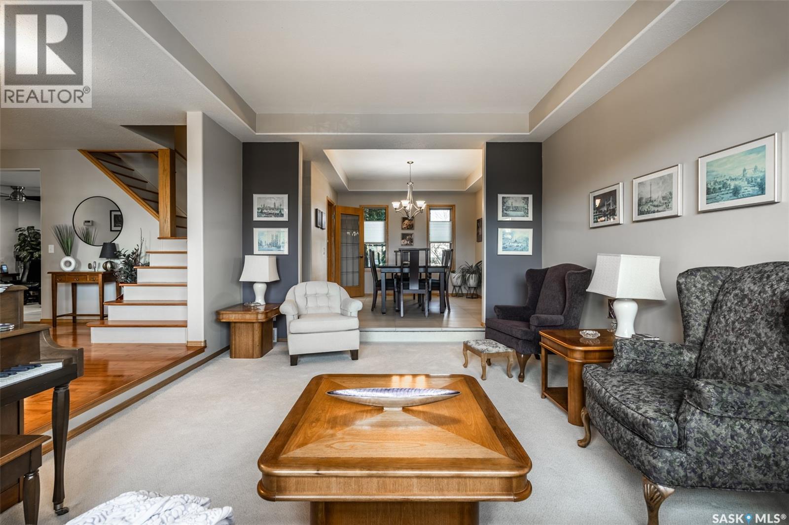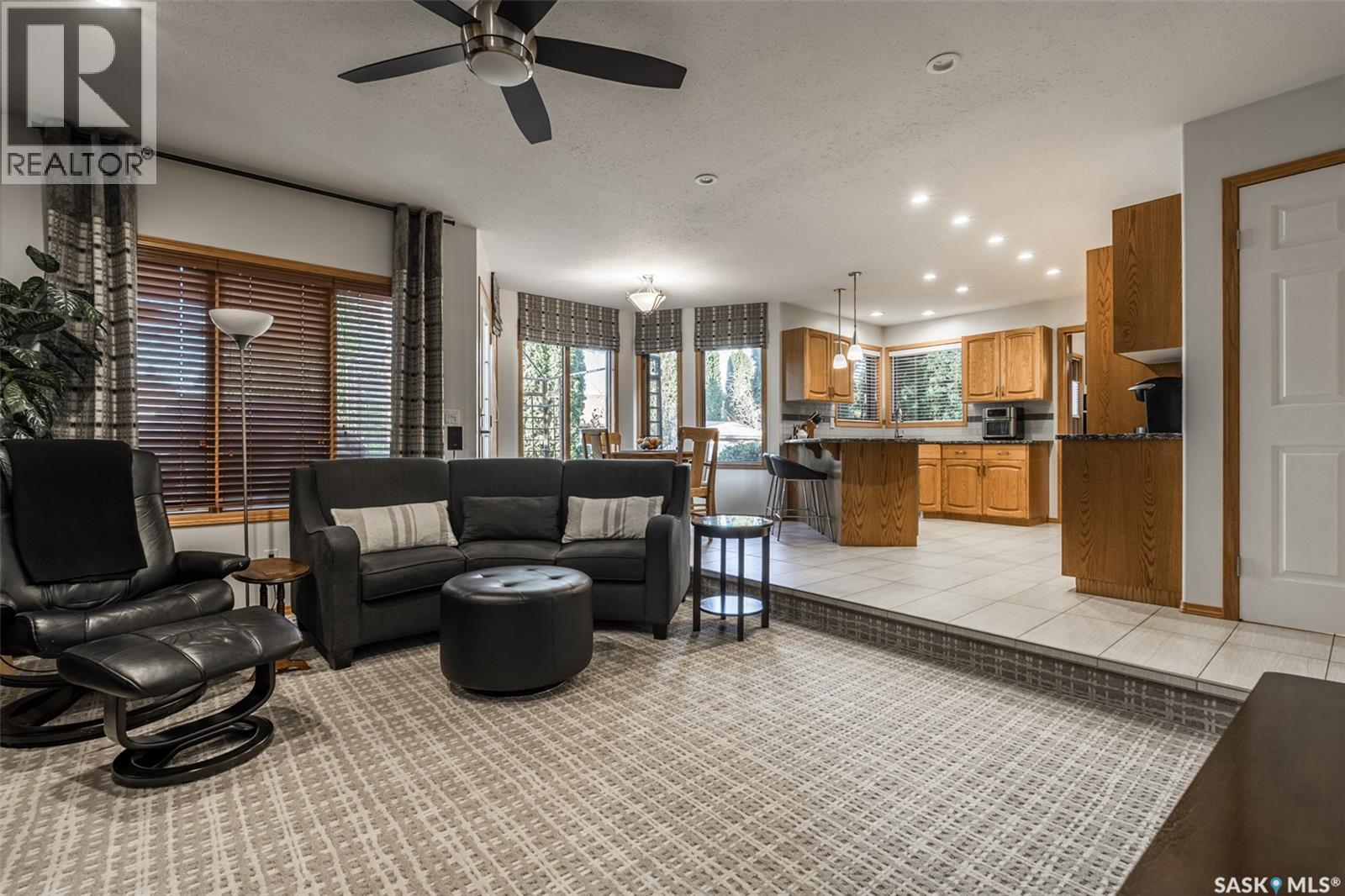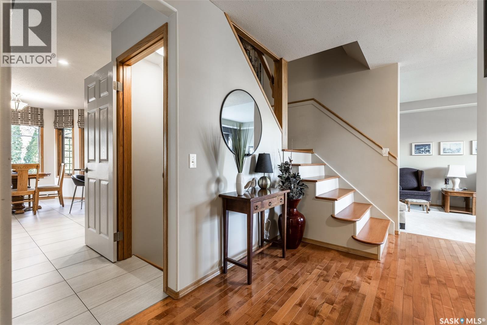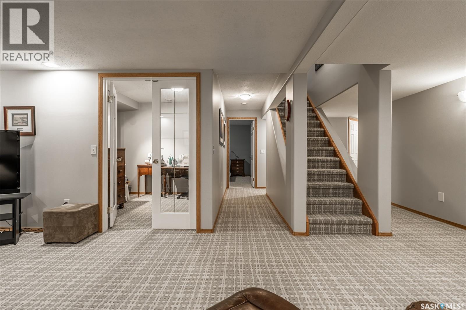 Welcome to 638 Hurley Cres in Saskatoon's Erindale neighbourhood. This 2 storey home was custom built and has been lovingly cared for by the same owners for over 30 years. A spacious foyer greets you as you walk in. At the front of the house there’s a more formal living room that leads directly to the dining room, making it a great space to host guests. The kitchen is very well appointed with stainless steel appliances, stone countertops, a pantry for storage, and views of the backyard. Here you’ll also find a nook for casual meals, and a living room with a cozy wood burning fireplace for cooler months. Also on the main floor is an office space, access to the double attached garage, main floor laundry, and a powder room. Heading up to the 2nd floor you’ll find a large primary bedroom with a walk through closet that leads to a 5 piece ensuite, as well as 2 big secondary bedrooms and a 4 pc bathroom. Down in the basement there's a recreation room for watching the game with friends or sending the kids down to play. There’s also a den, a 4th bedroom, a 3 piece bathroom and plenty to room to tuck things away in 2 storage spaces! Please note that the bedroom window does not meet current egress standards. Next summer you’ll thank yourself for buying this house, this yard is stunning! There’s a cedar deck with a gazebo (2 covers included), a brick patio, rubber curbing around the beautiful perennial beds, a perfect lawn, and the cutest shed that matches the house. (id:4069)