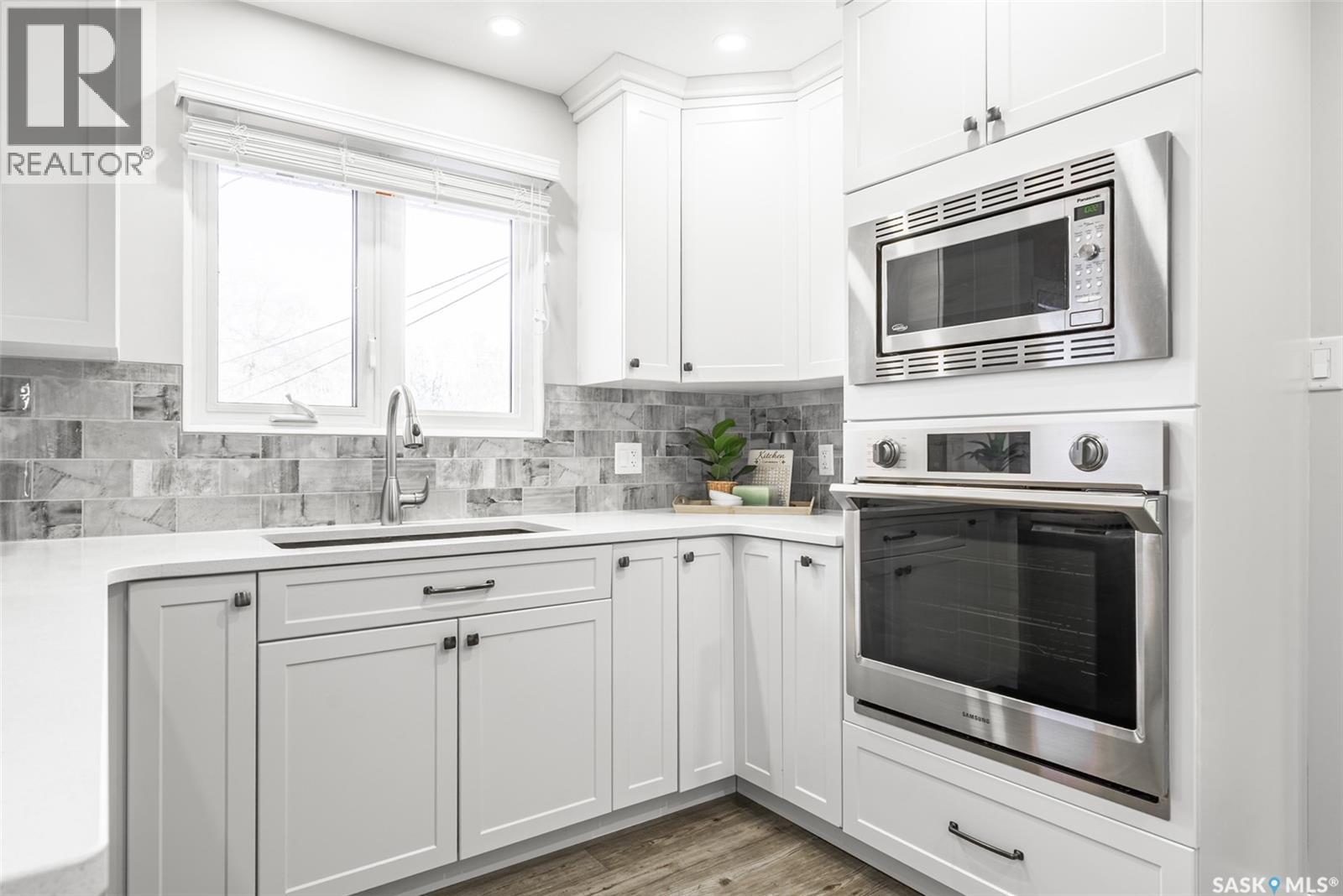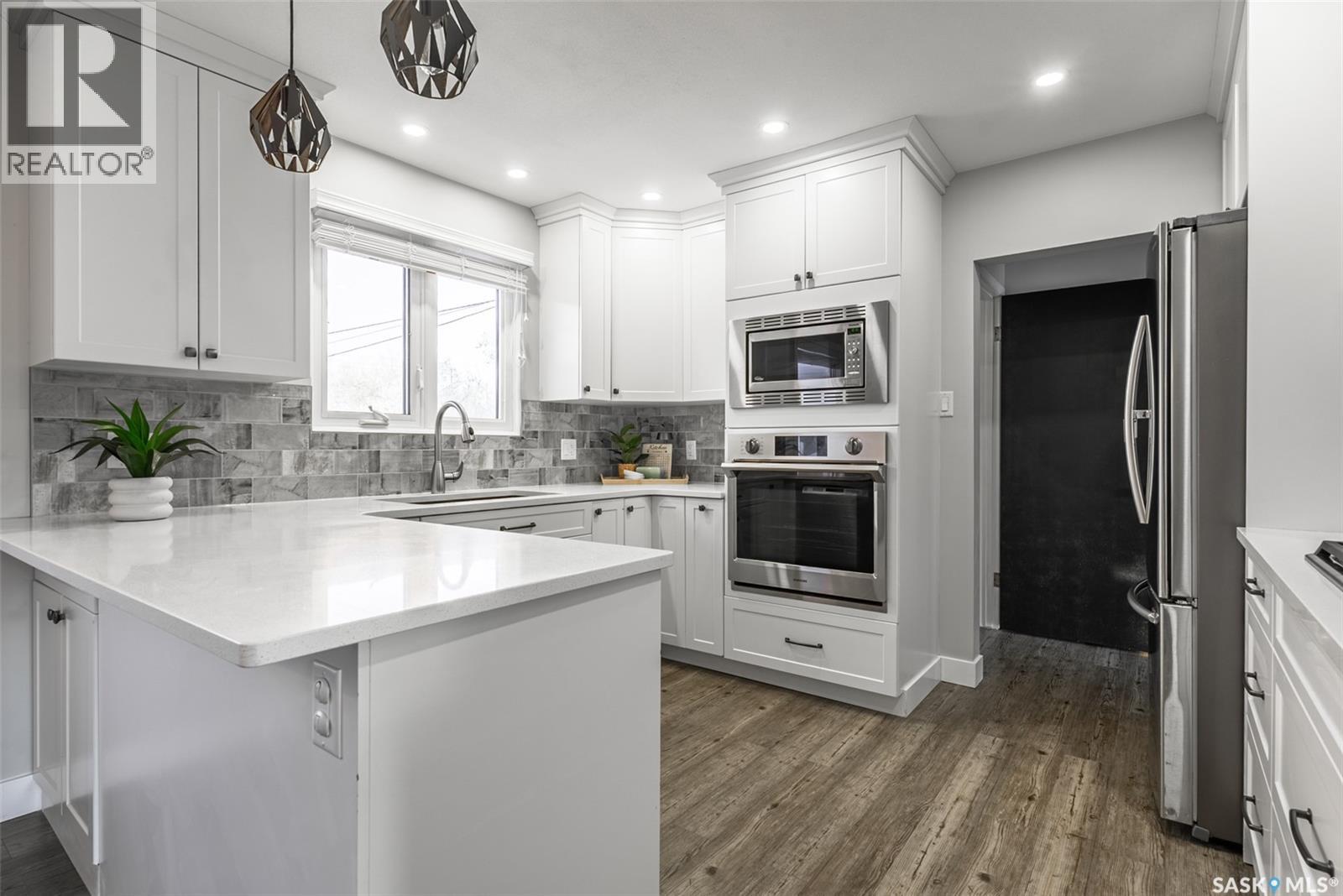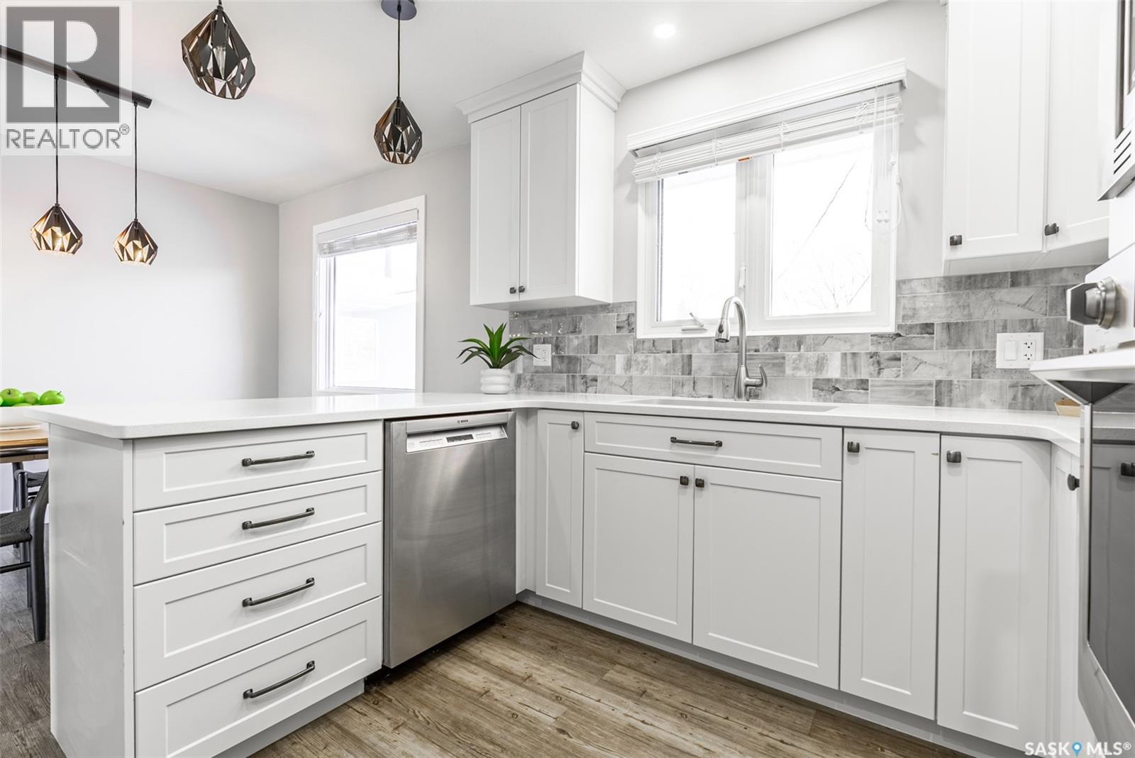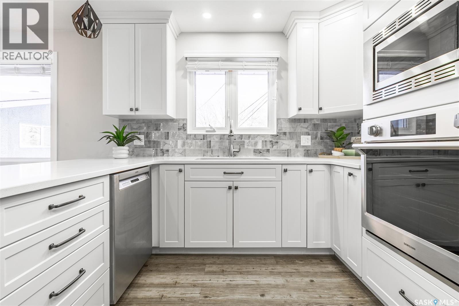 Welcome to 2616 Haultain Avenue, located in Saskatoon's Adelaide Churchill neighbourhood. Walking into the main floor living room you’re greeted with huge east facing windows. The dining room is just around the corner with views of the backyard with easy access to this beautiful kitchen. Quartz countertops, tile backsplash, a Wolf gas range, a built-in oven and microwave, you will find everything you need to be the at home chef in this kitchen. There's storage on the back of the peninsula as well as in the hallway leading to the back door. The second floor is home to 3 bedrooms: one primary and two secondary, all have been recently renovated. The 4pc bathroom has midcentury inspiration with it's real wood vanity, hex shaped heated tile floors, & bright natural light. Down on the third floor the current owners use it as a playroom but it could also be another living room. Down here you will also find a 4th bedroom, currently being used as an office, a spacious 5th bedroom, & a 3 pc bathroom. In addition to all this space is a 4th floor family room with heaps of storage & laundry room with more storage space! While you are down here make sure you check out the crawlspace (there's a light so you check it out!). Recent improvements include new windows throughout the entire house, a complete overhaul to the main bath as well as renovations to the 3pc bathroom, new lighting packages, landscaping done to the yard (you will see in the spring), paint throughout, & renovations to all the bedrooms. This home is in a prime east side location: backing a park that’s great for sledding, close to 4 elementary schools & high schools, easy access to the amenities Stonebridge offers, only minutes from downtown. The yard is even bigger than it seems as there is additional parking out back beside the double detached garage. When you live here you will have views of the park all year long, with kids sledding in the bowl, climbing on the trees, and people bird watching. As per the Seller’s direction, all offers will be presented on 01/18/2026 6:00PM. (id:4069)