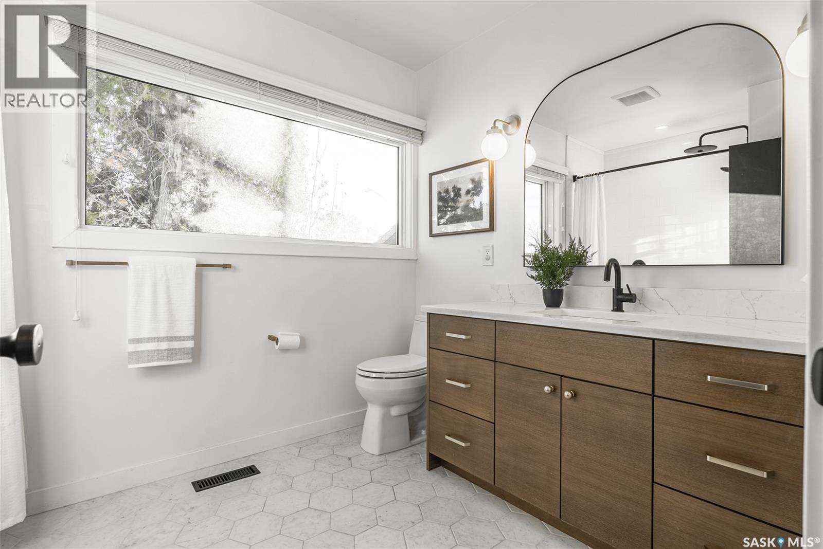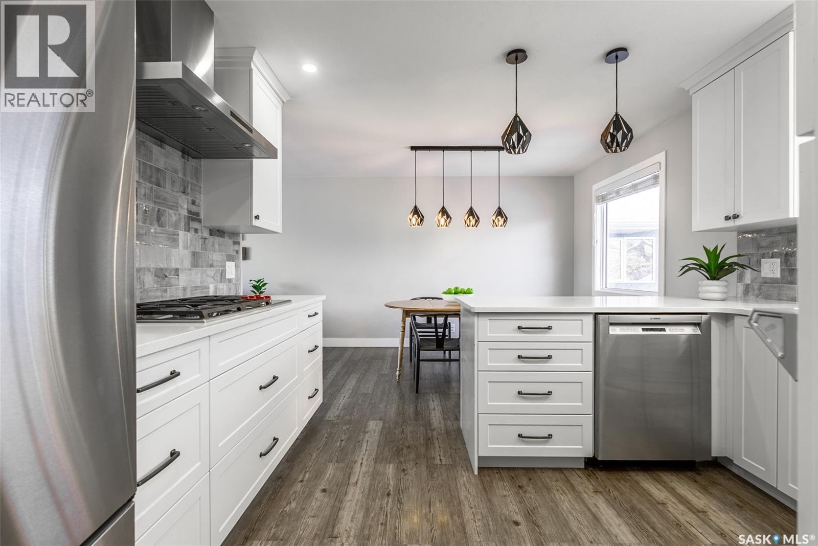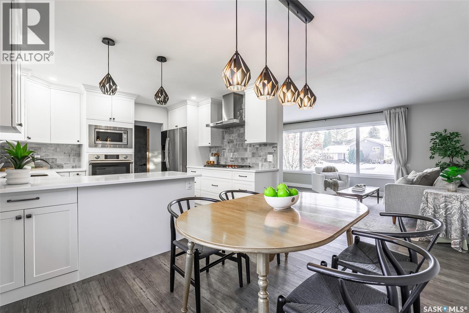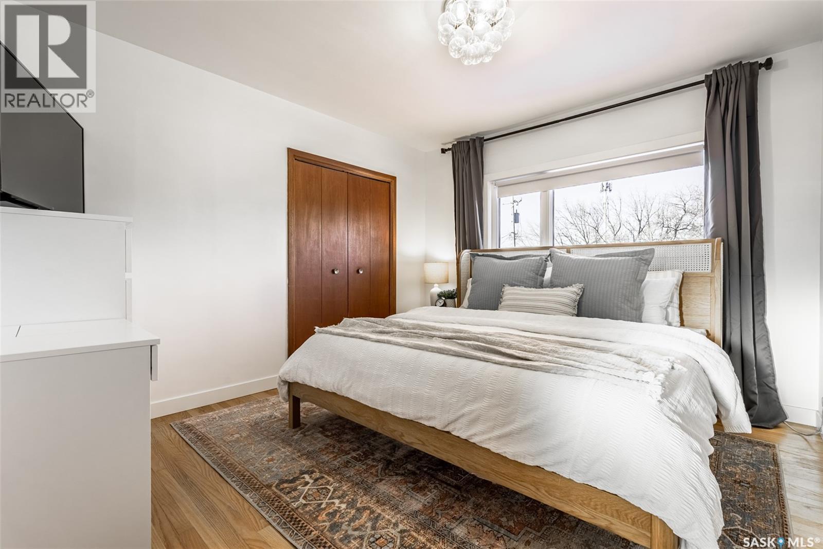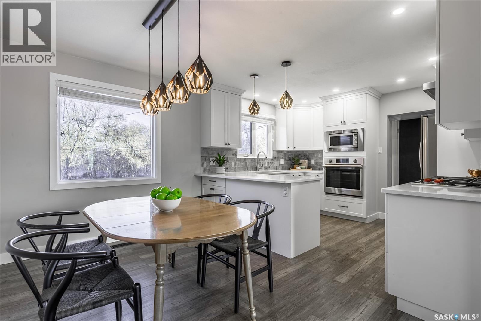 Welcome to 2616 Haultain Avenue, located in Saskatoon's Adelaide Churchill neighbourhood. Walking into the main floor living room you’re greeted with huge east facing windows. The dining room is just around the corner with views of the backyard with easy access to this beautiful kitchen. Quartz countertops, tile backsplash, a Wolf gas range, a built-in oven and microwave, you will find everything you need to be the at home chef in this kitchen. There's storage on the back of the peninsula as well as in the hallway leading to the back door. The second floor is home to 3 bedrooms: one primary and two secondary, all have been recently renovated. The 4pc bathroom has midcentury inspiration with it's real wood vanity, hex shaped heated tile floors, & bright natural light. Down on the third floor the current owners use it as a playroom but it could also be another living room. Down here you will also find a 4th bedroom, currently being used as an office, a spacious 5th bedroom, & a 3 pc bathroom. In addition to all this space is a 4th floor family room with heaps of storage & laundry room with more storage space! While you are down here make sure you check out the crawlspace (there's a light so you check it out!). Recent improvements include new windows throughout the entire house, a complete overhaul to the main bath as well as renovations to the 3pc bathroom, new lighting packages, landscaping done to the yard (you will see in the spring), paint throughout, & renovations to all the bedrooms. This home is in a prime east side location: backing a park that’s great for sledding, close to 4 elementary schools & high schools, easy access to the amenities Stonebridge offers, only minutes from downtown. The yard is even bigger than it seems as there is additional parking out back beside the double detached garage. When you live here you will have views of the park all year long, with kids sledding in the bowl, climbing on the trees, and people bird watching. As per the Seller’s direction, all offers will be presented on 01/18/2026 6:00PM. (id:4069)